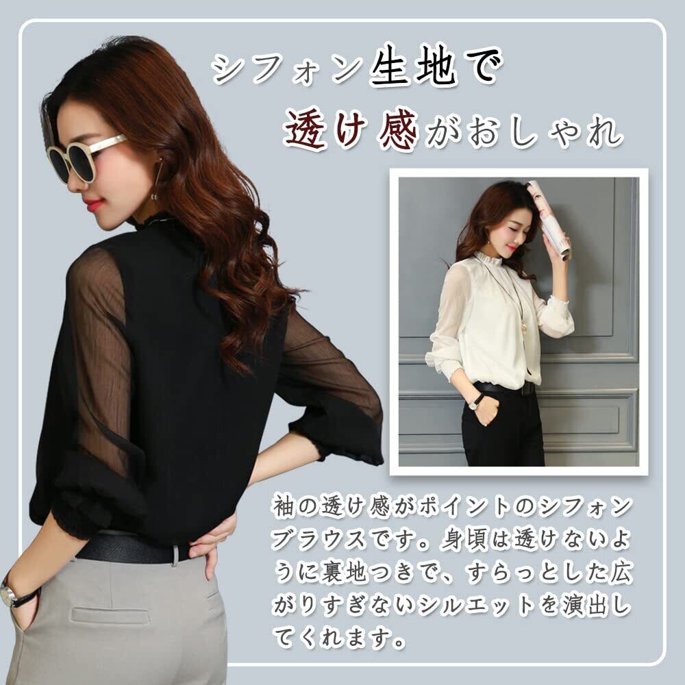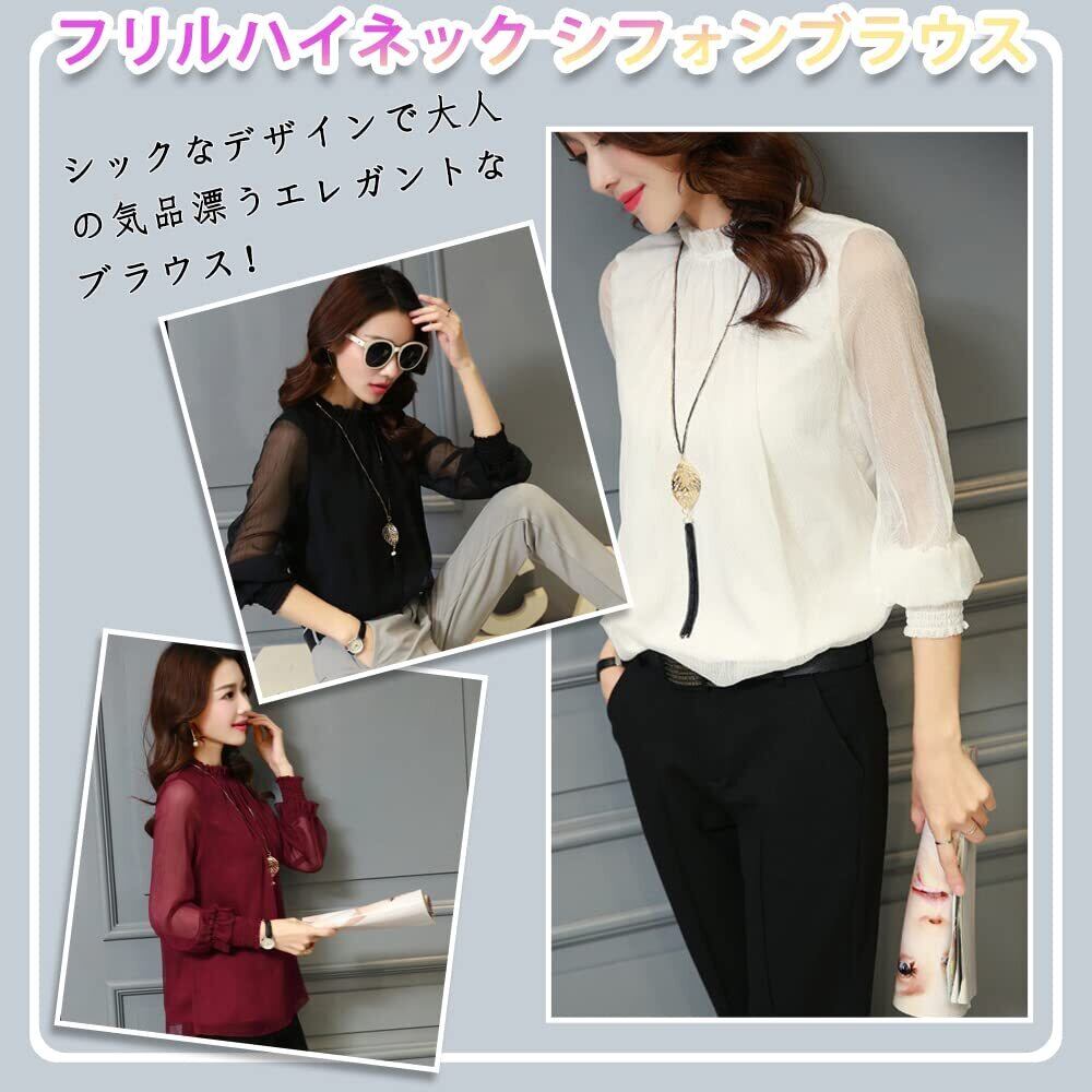 [YUESUO] シフォン ブラウス レディース 長袖 シャツ ハイネック プルオーバー 袖シースルー トップス 透かし彫り フリル フォーマル オフィス 通勤 ビジネス きれいめ おしゃれ 着痩せ 春 秋 冬