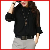 シックなデザインで大人の気品漂うエレガントなブラウス!これ1枚でサマになる女性らしいトップスです。袖部分は透け感があるので、暗いカラーでも軽やかに着こなせます大人コーデにぴったりの優秀アイテム!