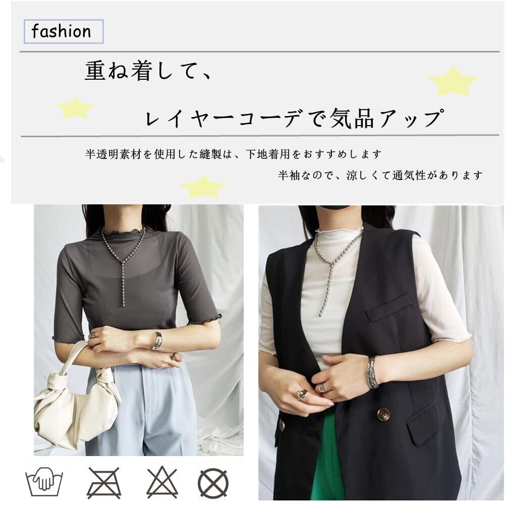 [Xingsas] シアー トップス 総レース シースルー レディース 春夏 春作絶妙な透け感肌見せ重ね着着回し力 高伸縮 ブラウス チュール メロー加工 ハイネック インナー 軽量 薄手 半袖 花柄