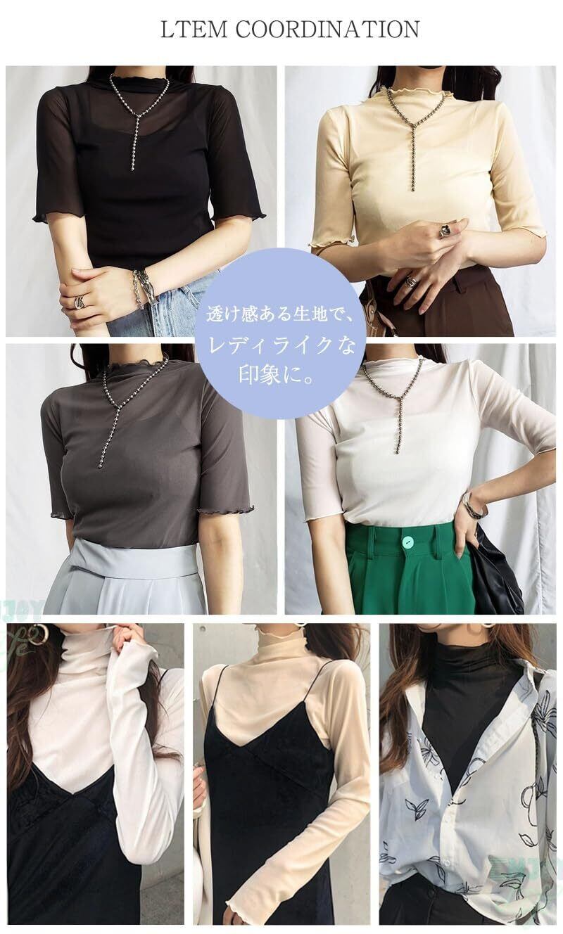 【心地よい質感と高い弾力】柔らかく、通気性に優れ、少しドレープ感のある素材、透明感のある柔らかい生地。 チクチクしない感じで、ふんわりとした感触が完成します。 程よい伸縮性で着心地も良く、シャツとの重ね着にもおすすめです。