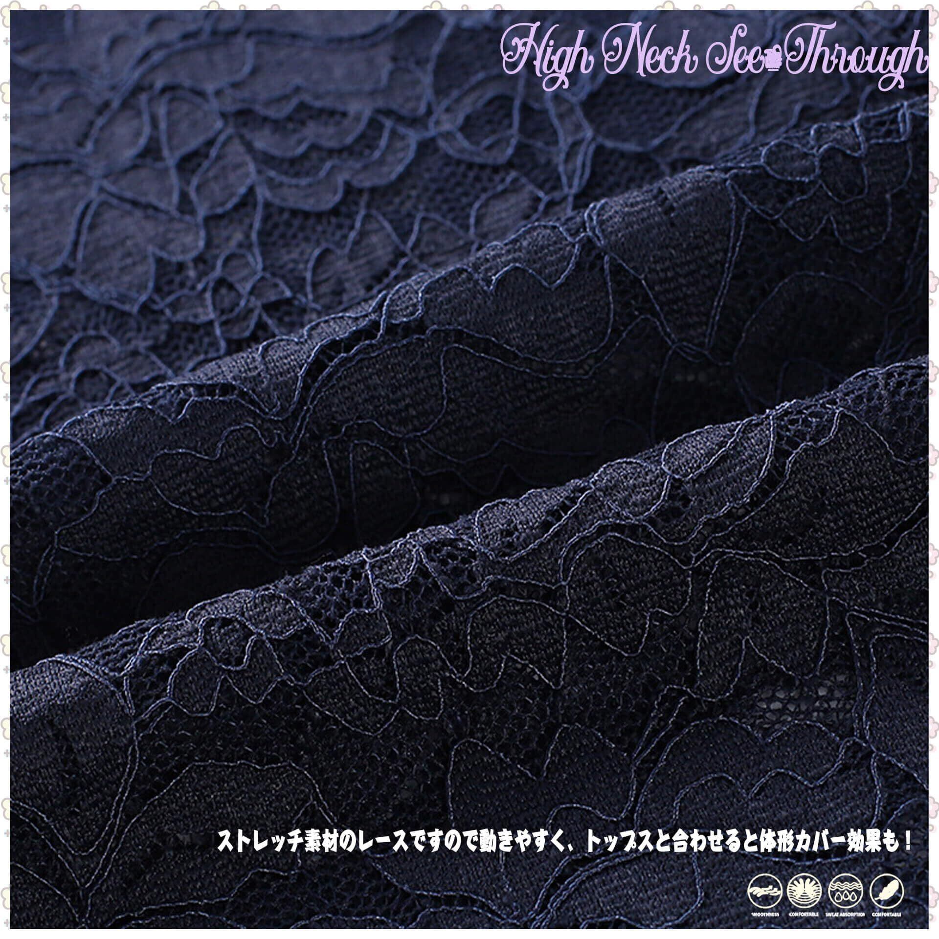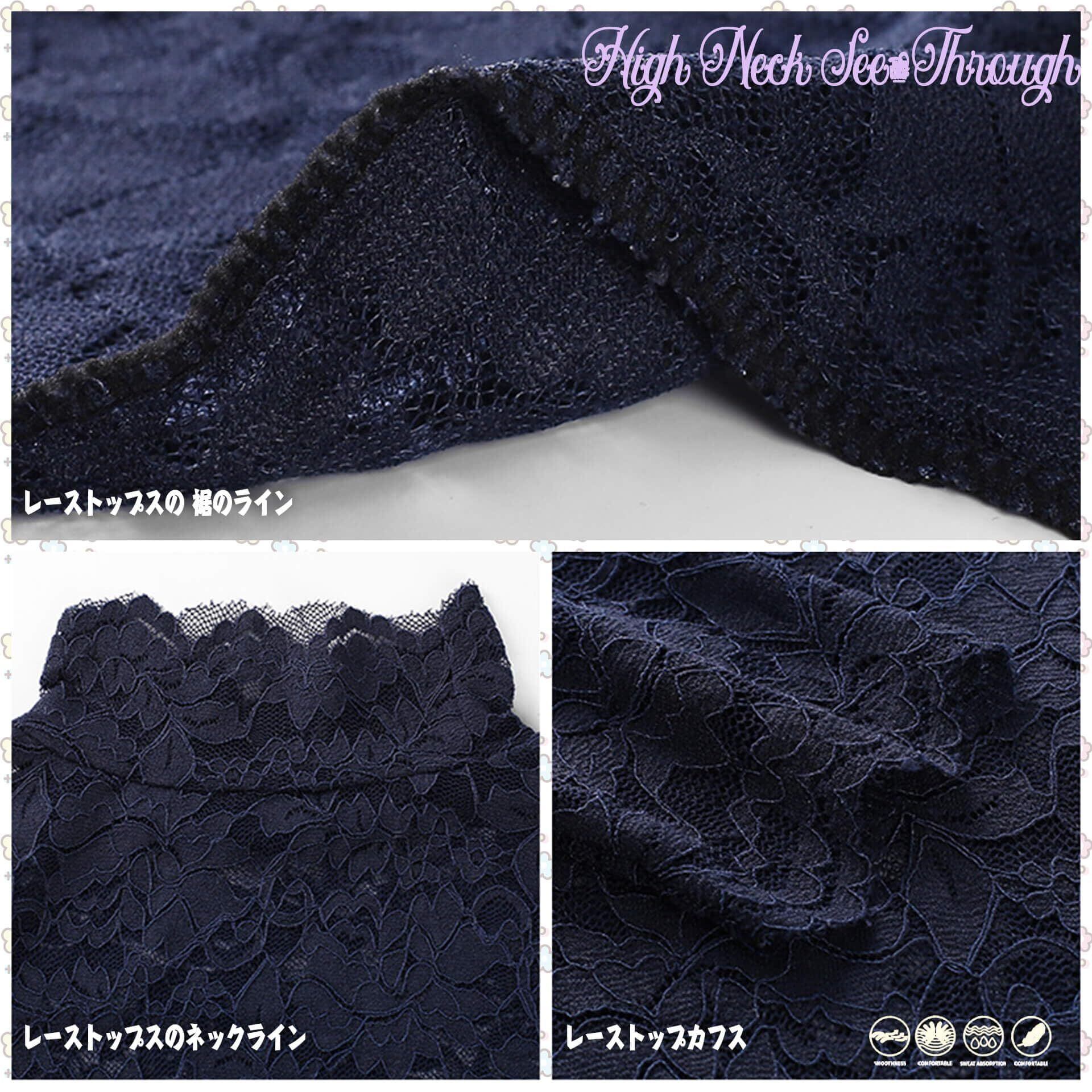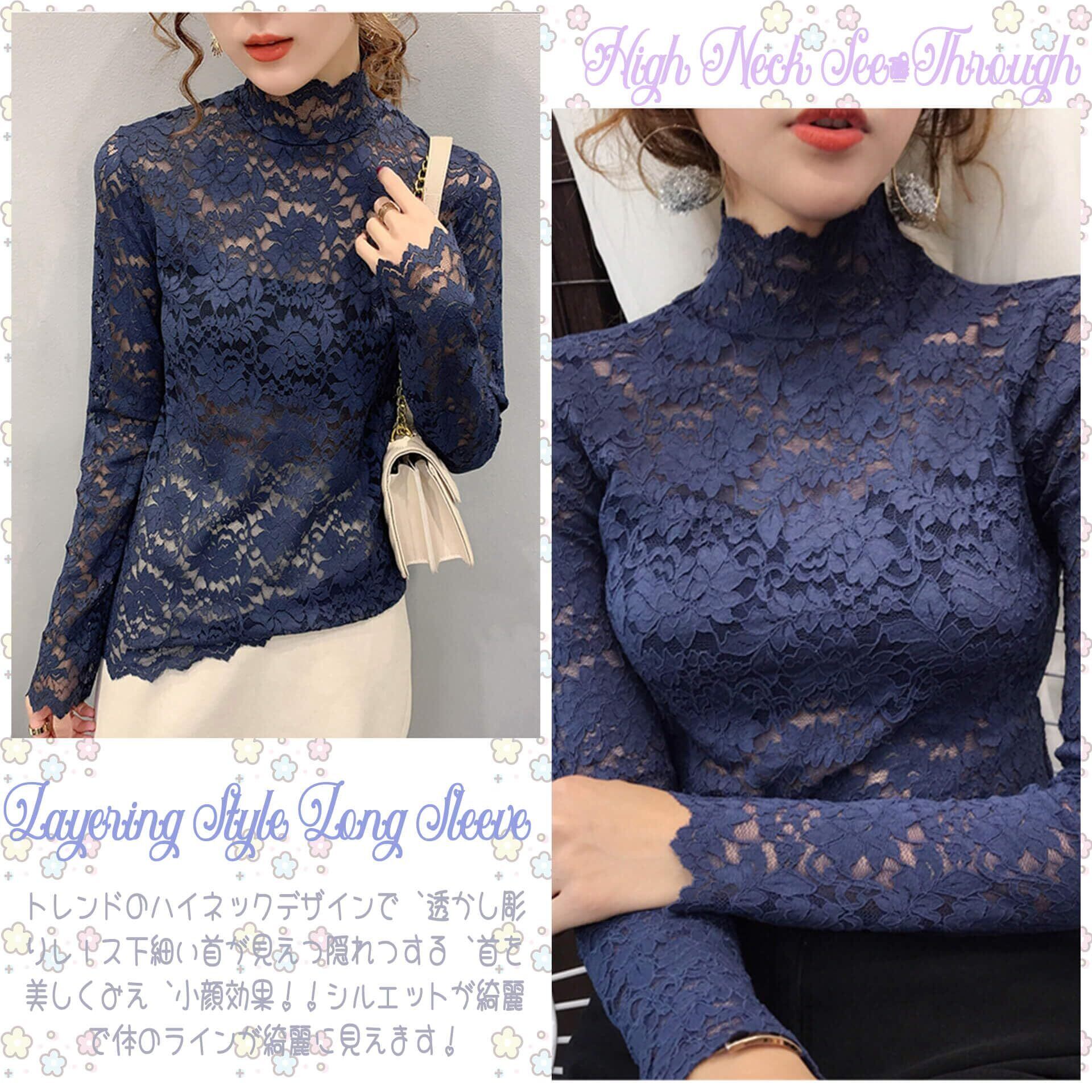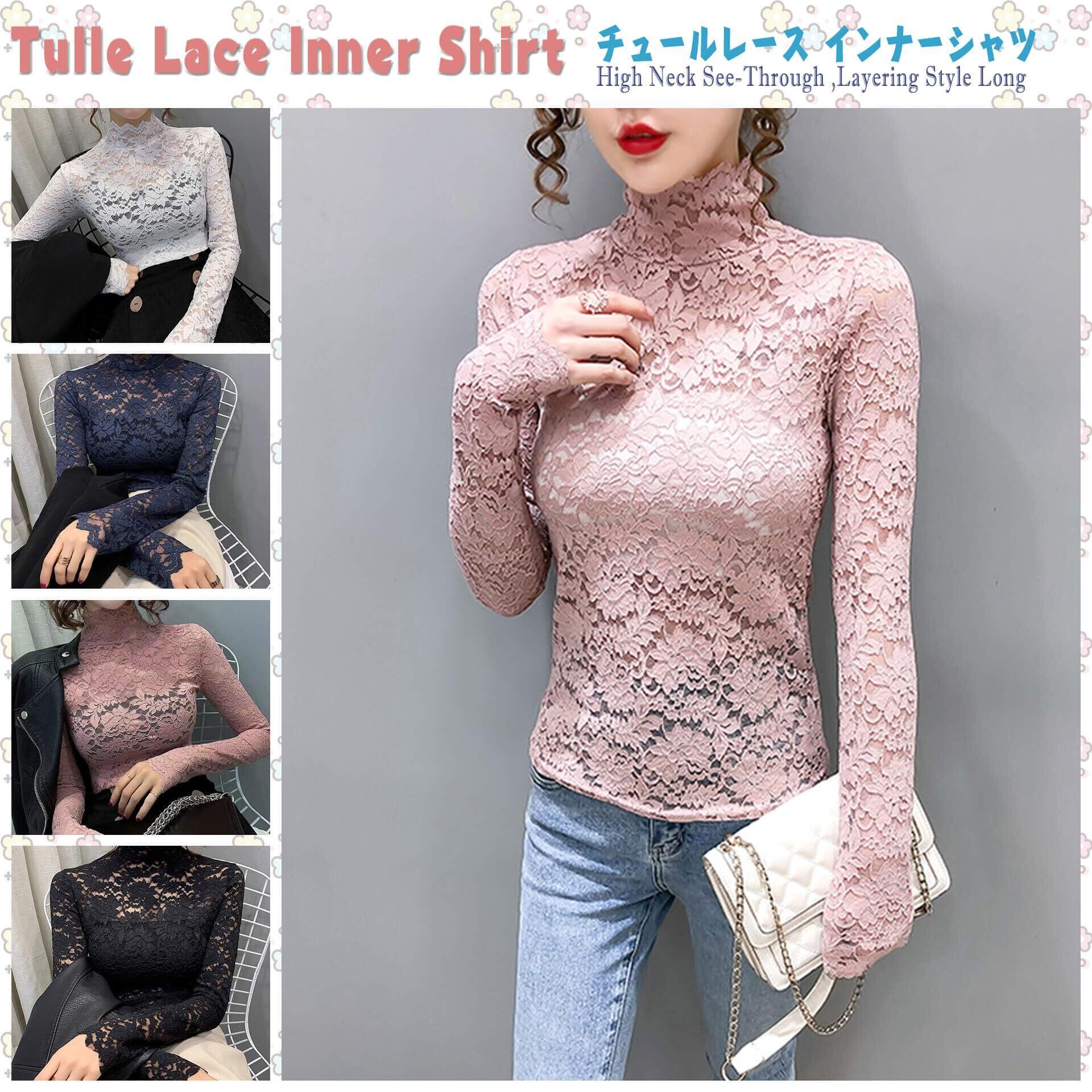 [fourfivesixはる] 総レースブラウス レース インナー トップス チュールレース ハイネック シースルー インナーシャツ 重ね着風 長袖 透け 薄手 大人セクシーインナー ブラウス 柔らかい