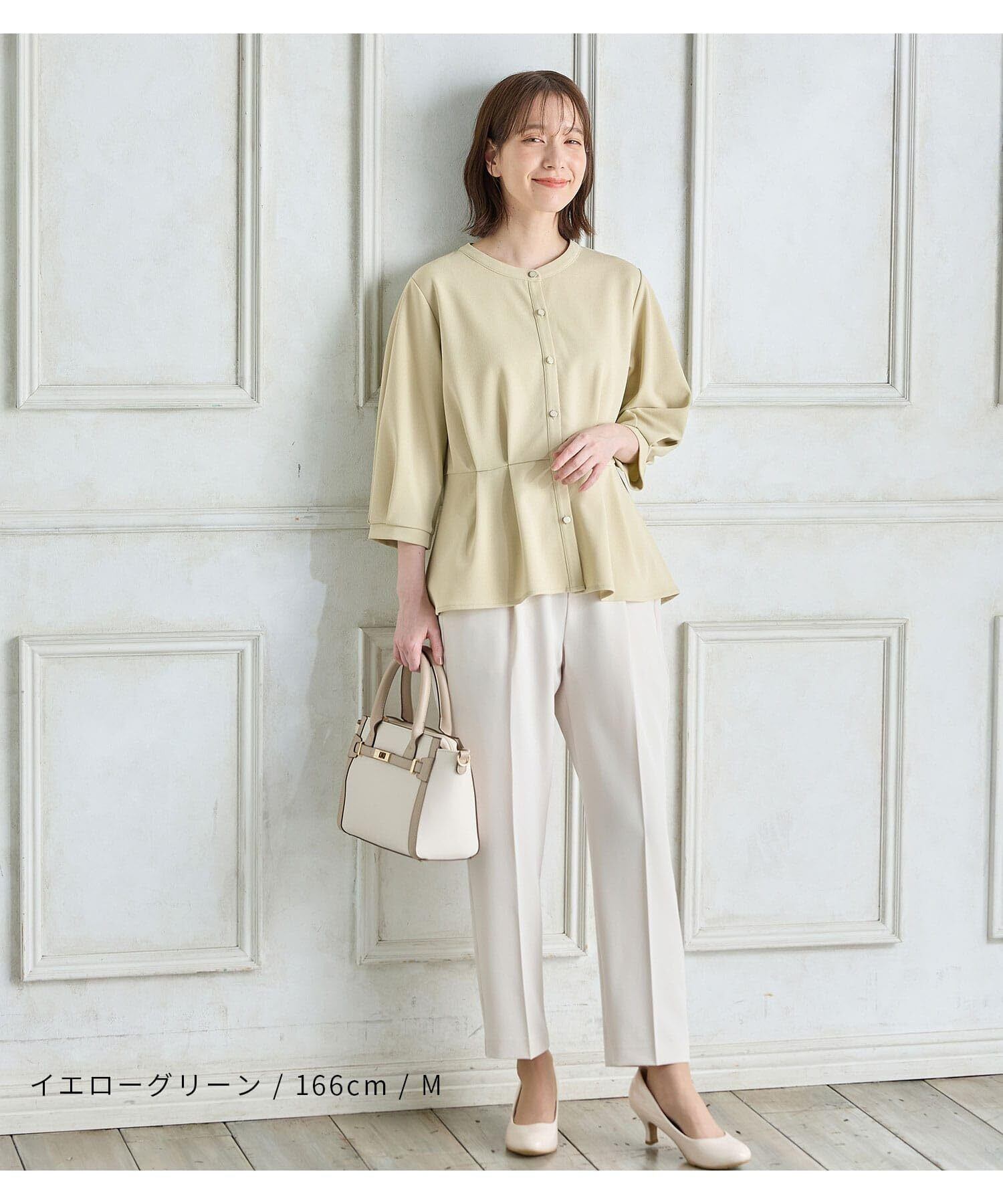 ジャケットにも合うサイズ感で、テーパードパンツと合わせた、お仕事やセレモニーなどのきれいめスタイルに大活躍。