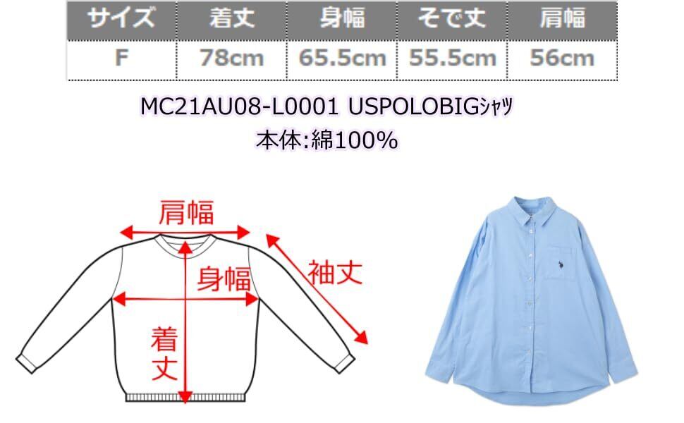 [ウィゴー] 別注 U.S. POLO ASSN. BIG シャツ ビッグ 大きいサイズ ゆったり ロゴ 刺繍 無地 服 トップス アウター 春 夏 秋 冬 レディース