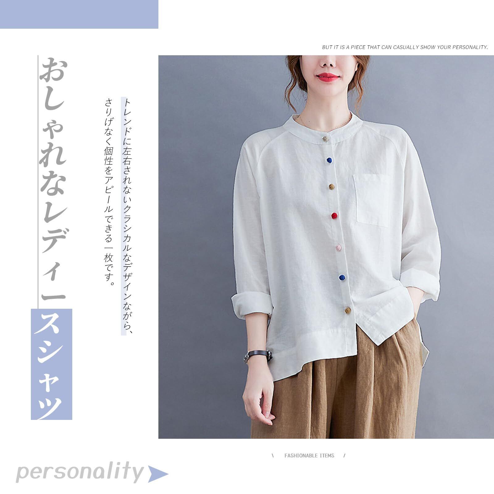 [Z8two] 綿麻シャツ レディース 長袖 リネン風 トップス カラフルなボタンシャツ 女性コート着 薄手 柔かい 文芸風 ティシャツ オフィス 通勤 綿の麻 通気性 日常 無地 大人 春 夏 秋