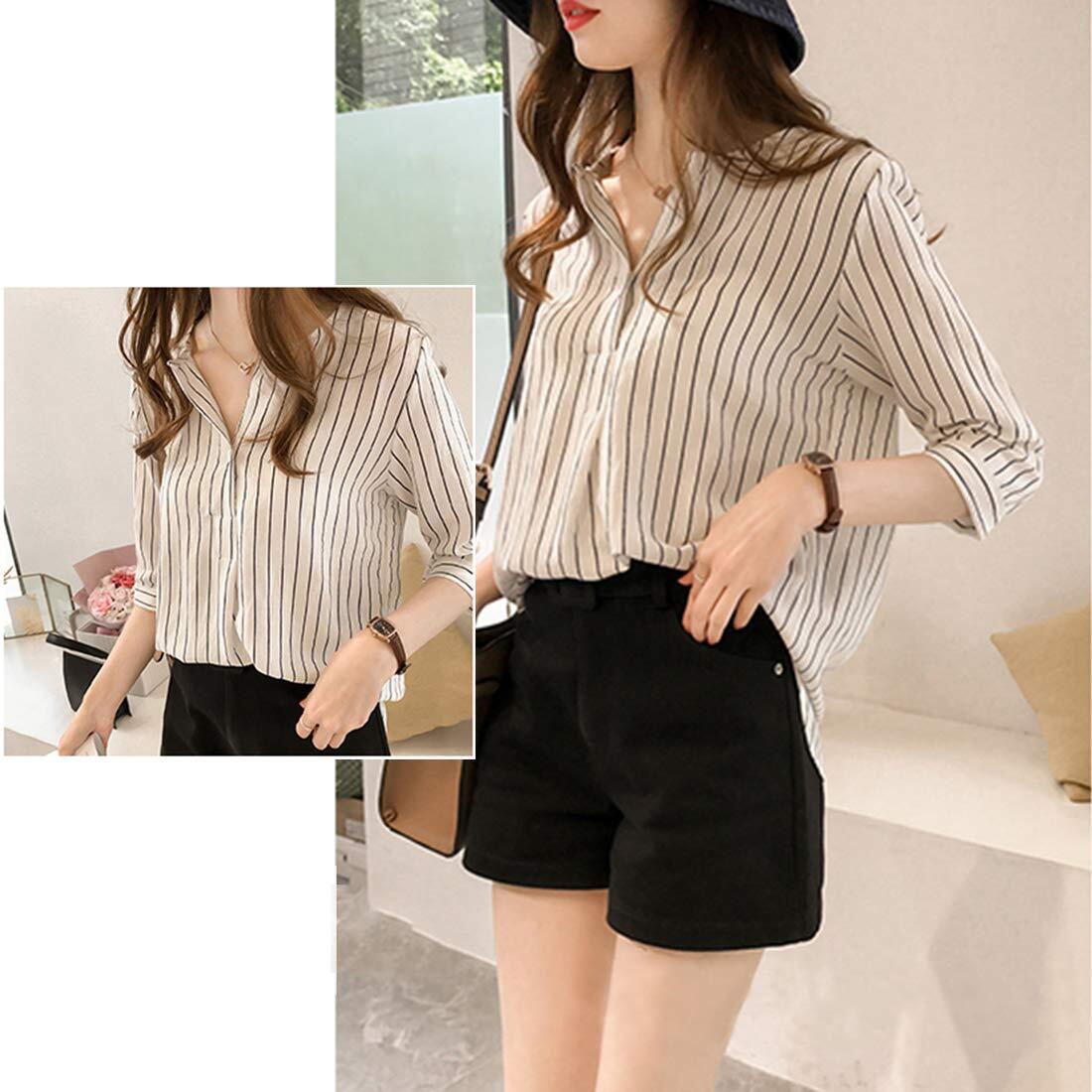 [Sueeya] スイーヤ シャツ ブラウス レディース ストライプ スリット 七分袖 ゆったり 大きいサイズ プルオーバー トップス お洒落 可愛い カジュアル ファッション 通勤 日常 夏 秋