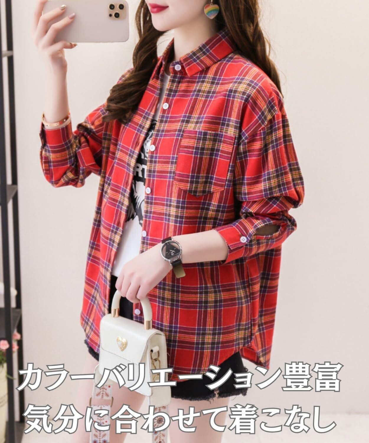 "【おしゃれに着こなすコーディネートをご紹介】 チェックシャツは、きれいめでゆったりとしたデザインが特徴です。春と秋にぴったりのカジュアルなアイテムで、学生や活動的な女性におすすめです。素材は軽やかで肌触りが柔らかく、着心地も抜群です"