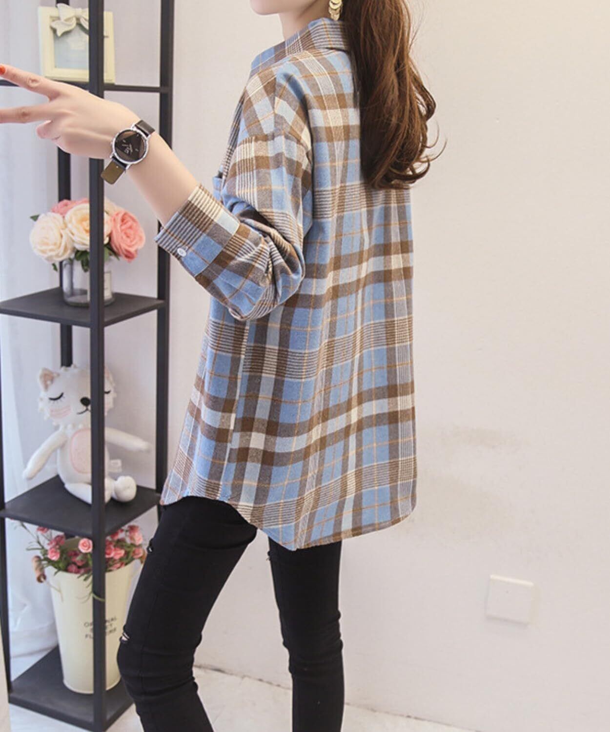[Aquino KOKO] ゆったり チェック シャツ レディース 長袖 春 夏 秋 冬 カジュアル 学生 綿 通学 普段着 部屋着 オタク カラフル