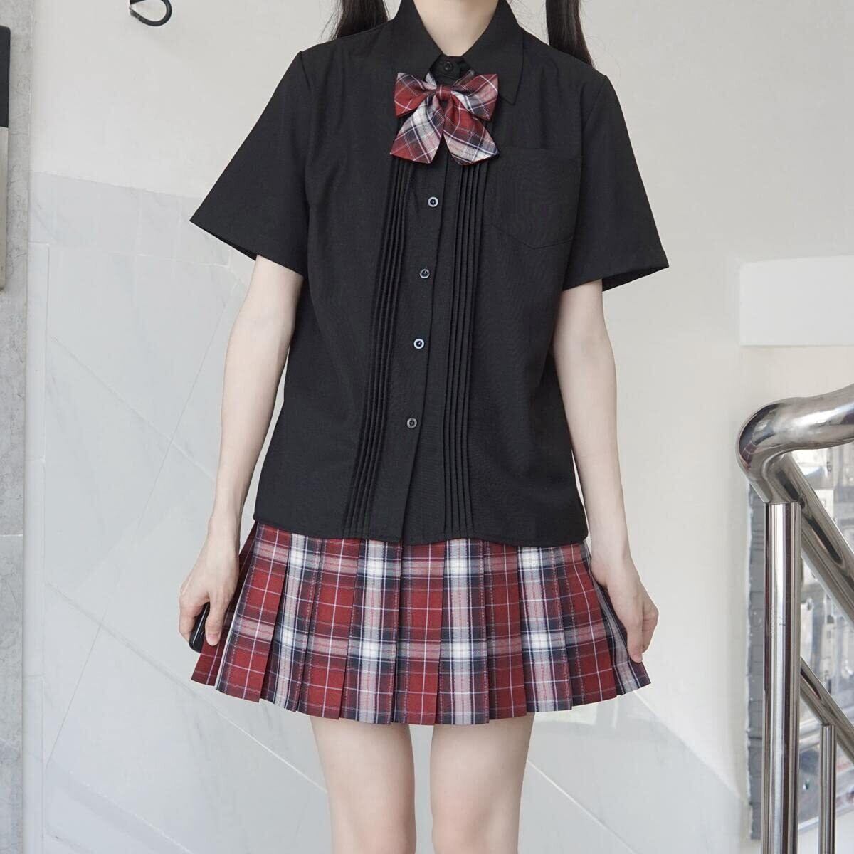 [Sharphon] レディース タック ポケット付 スクールシャツ 長袖/半袖 角襟/丸襟 無地 綿 シャツ トップス