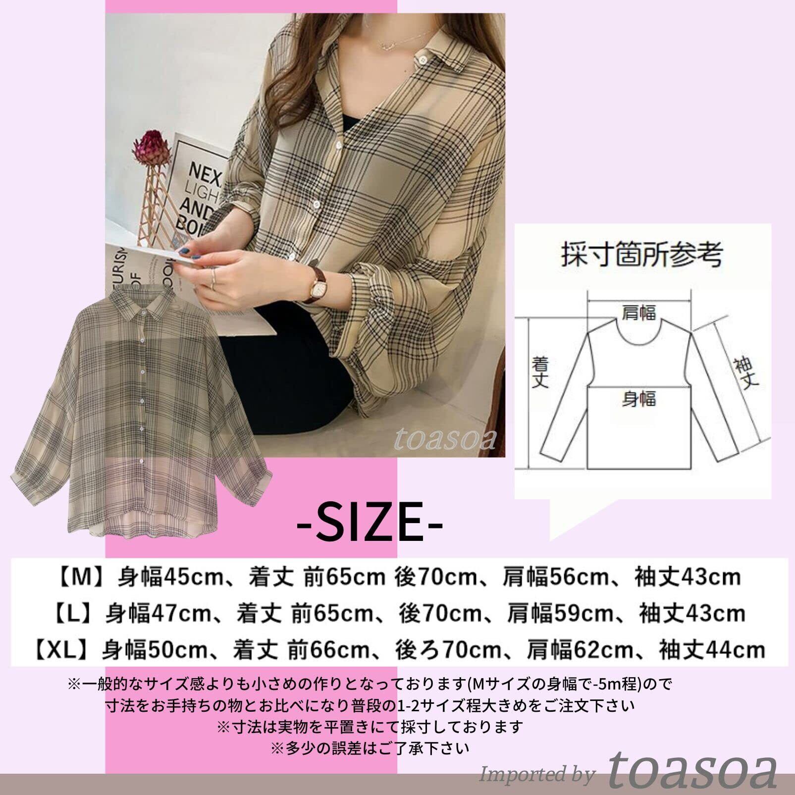 [toasoa] チェック シャツ レディース トップス 長袖 前開き シフォン とろみ ブラウス