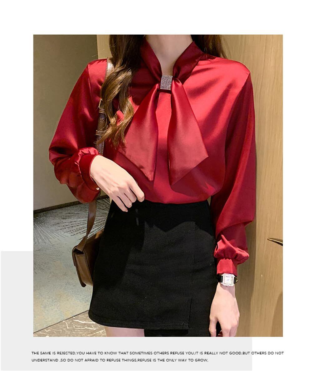 [SYitong] シャツ ブラウス レディース シフォン リボン トップス ボウタイブラウス 長袖 爽やか おしゃれ オフィス 大きいサイズ シフォンブラウス カジュアル 通勤 リボンブラウス 春 白 ゆったり きれいめ 着痩せ 体型カバー