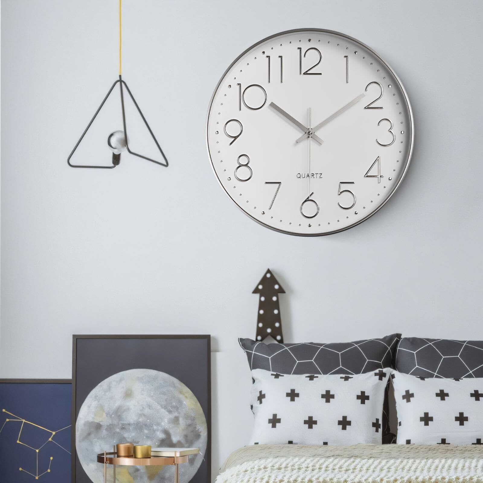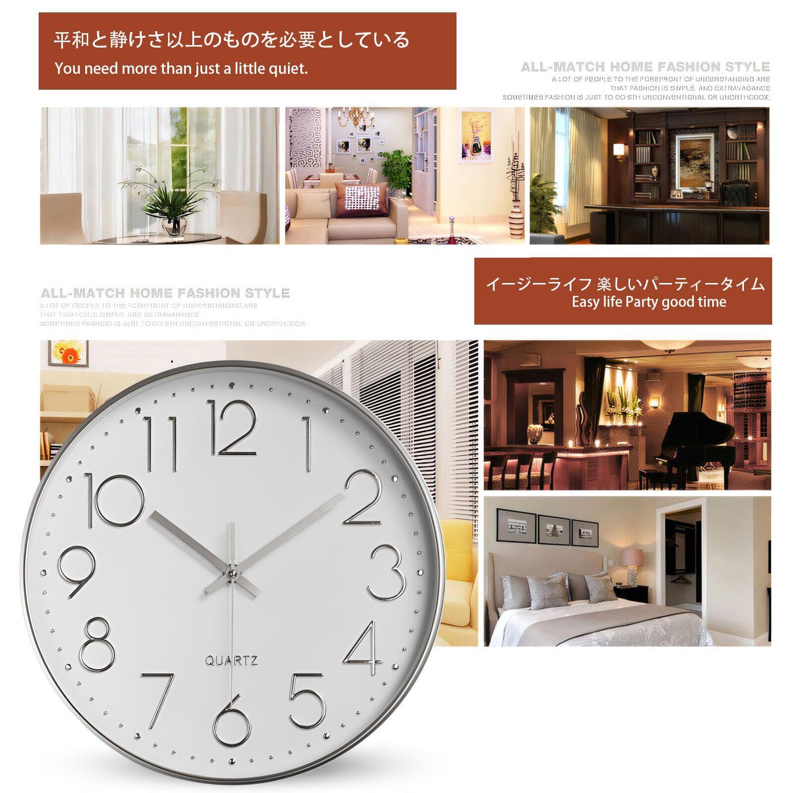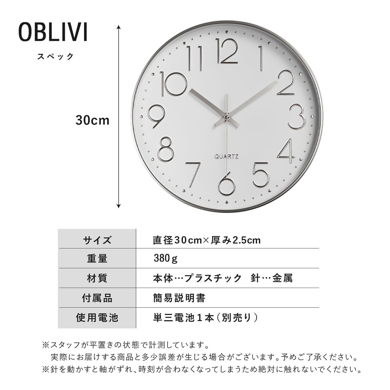 Oblivi 掛け時計 非電波 おしゃれ 北欧 連続秒針 静音 壁掛け時計 掛時計 自宅 寝室 部屋飾り 贈り物 インテリア 大数字 見やすい 30cm (ぎんはくしょく)