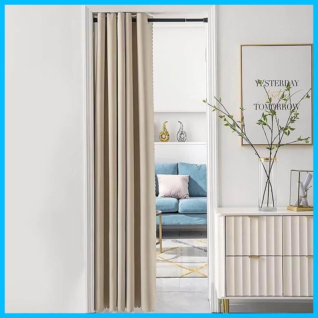 唐土工房 間仕切りカーテン 断熱防寒 のれん おしゃれ 遮光 暖簾 170cm丈 幅100cm アコーディオンカーテン 間仕切り ロング 北欧 防音 目隠し ドアカーテン ハトメ式 突っ張り棒カーテン 無地 厚手 保温 冷気遮断 玄関 入り口 仕切り 1枚 洗える ベージュ
