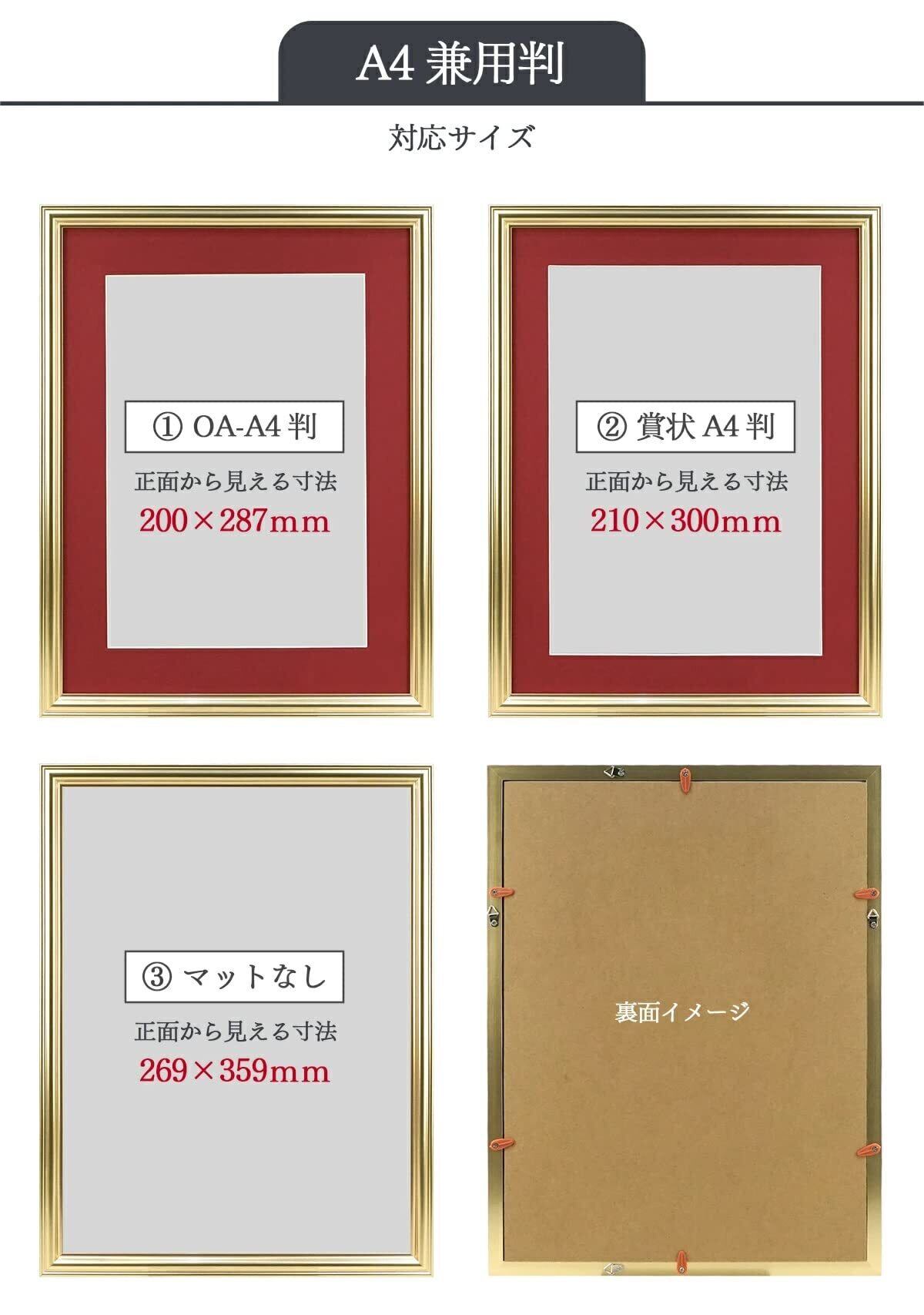 マット2枚付[賞状A4判窓寸:210×300mm][OA-A4判窓寸:200×287mm]