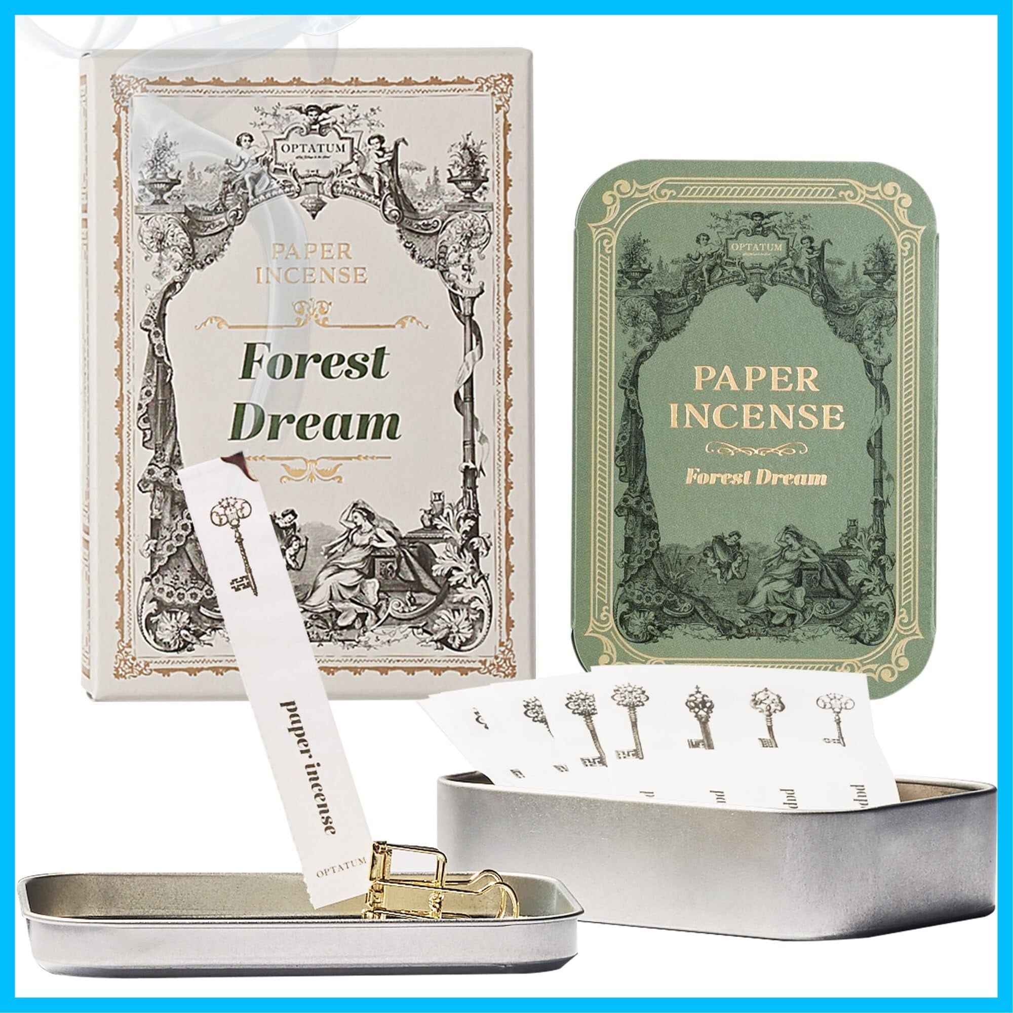 OPTATUM ペーパーインセンスキット - 48枚入り、ビンテージメタルケース | リラクゼーション、瞑想、空気清浄のための良い香りのペーパーインセンス | 美的なホームデコ、彼女と彼へのユニークなギフト | フォレストドリーム |