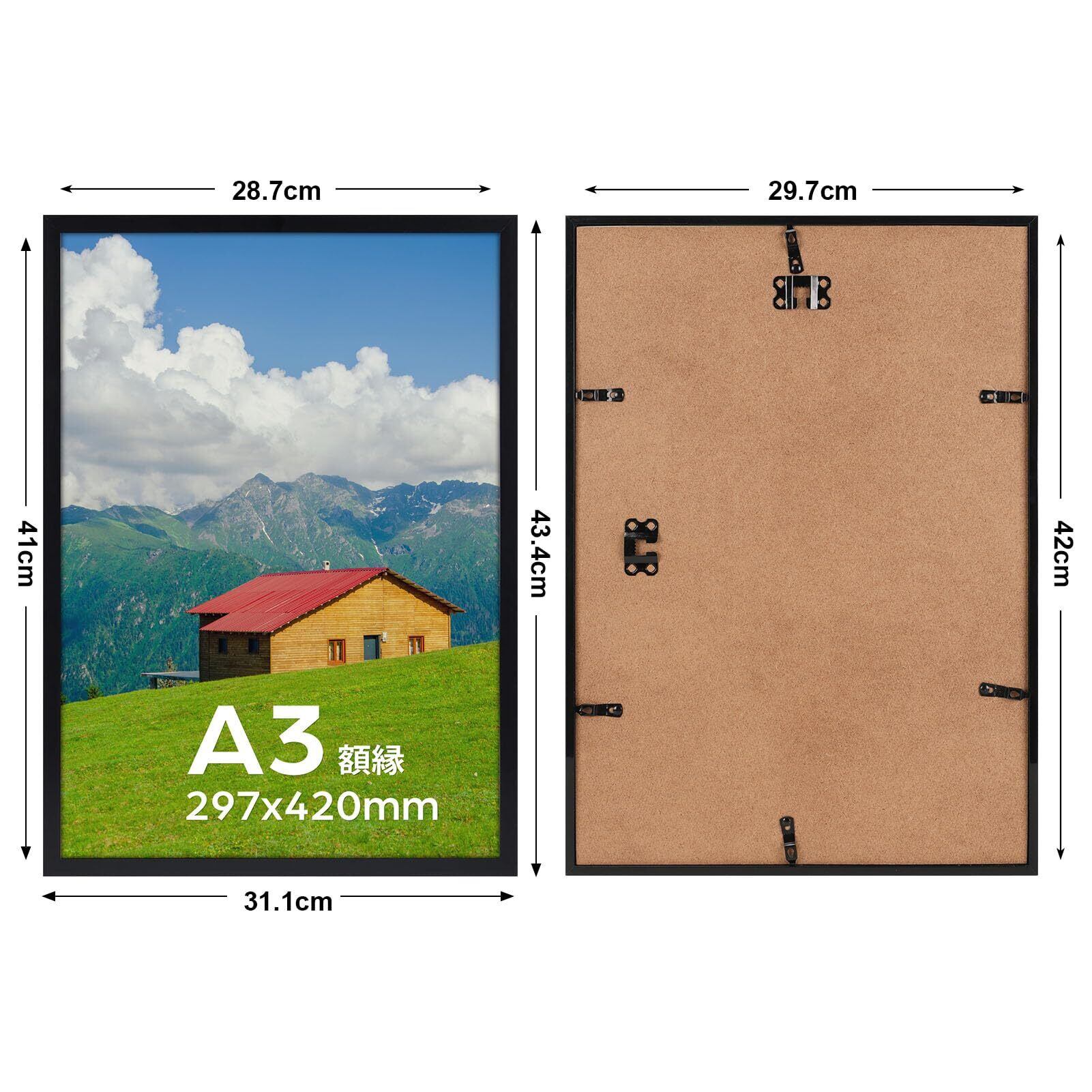 A3サイズ対応: 額縁の外寸:31.1x43.4cm、内寸:29.9x42.2cmで、A3サイズの写真、賞状やポスターなどにぴったりです。