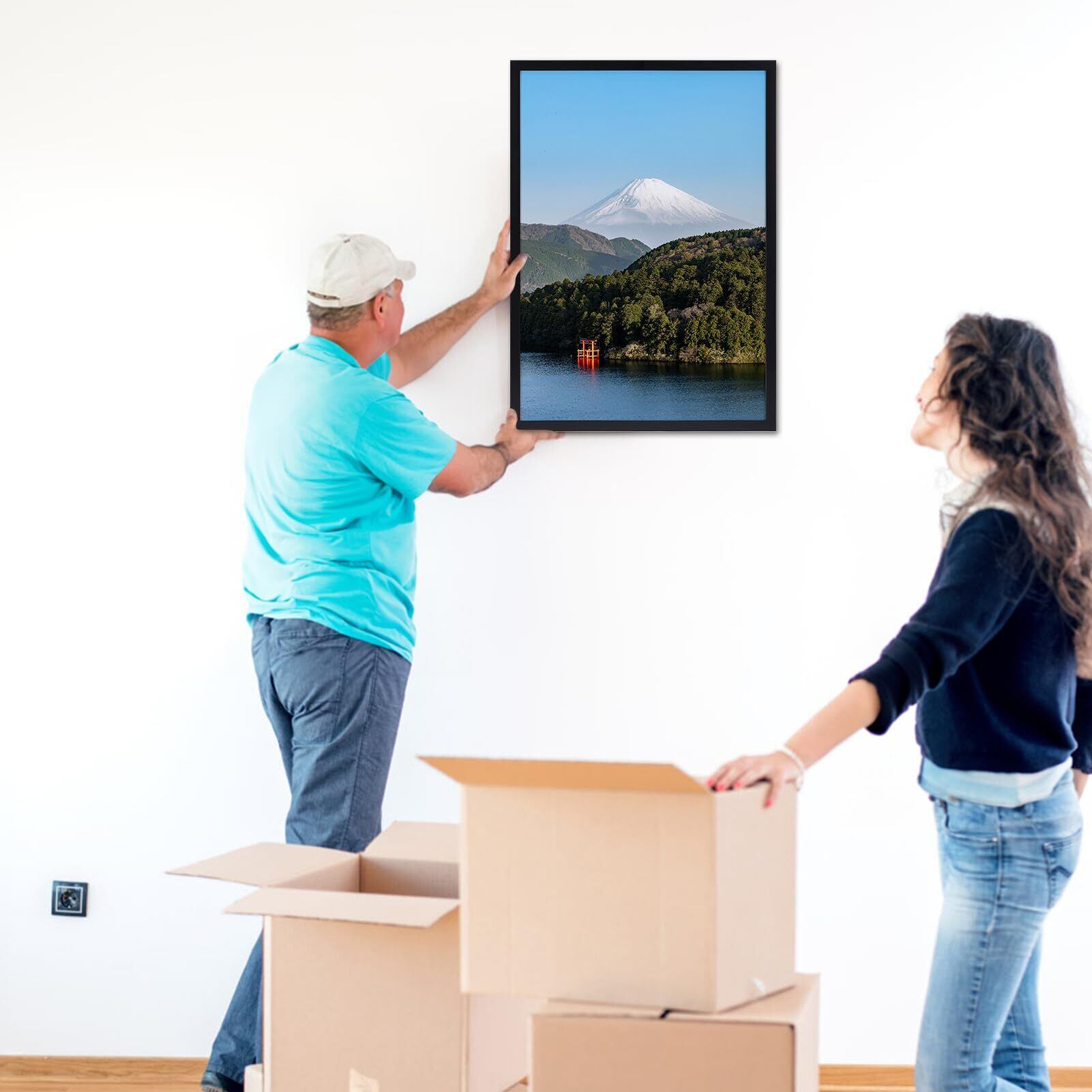 軽量設計: プラスチック製の枠と表面は、軽量で取り付けが簡単。 裏面はイーゼル付いていません、壁掛けだけです。縦にも横にも飾れます。
