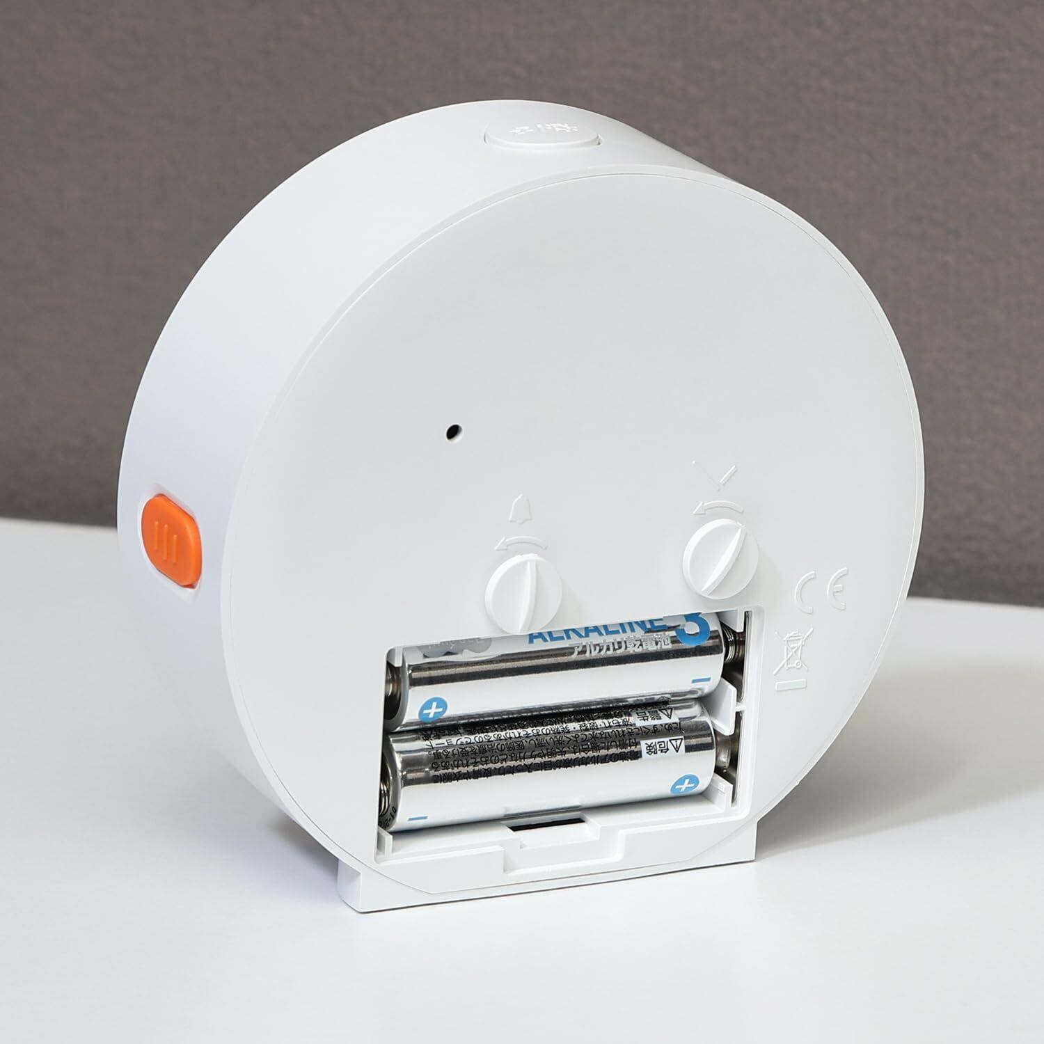シンプルながら、アラーム針とアラームスイッチにオレンジのアクセント色を使った洗練されたデザインです。