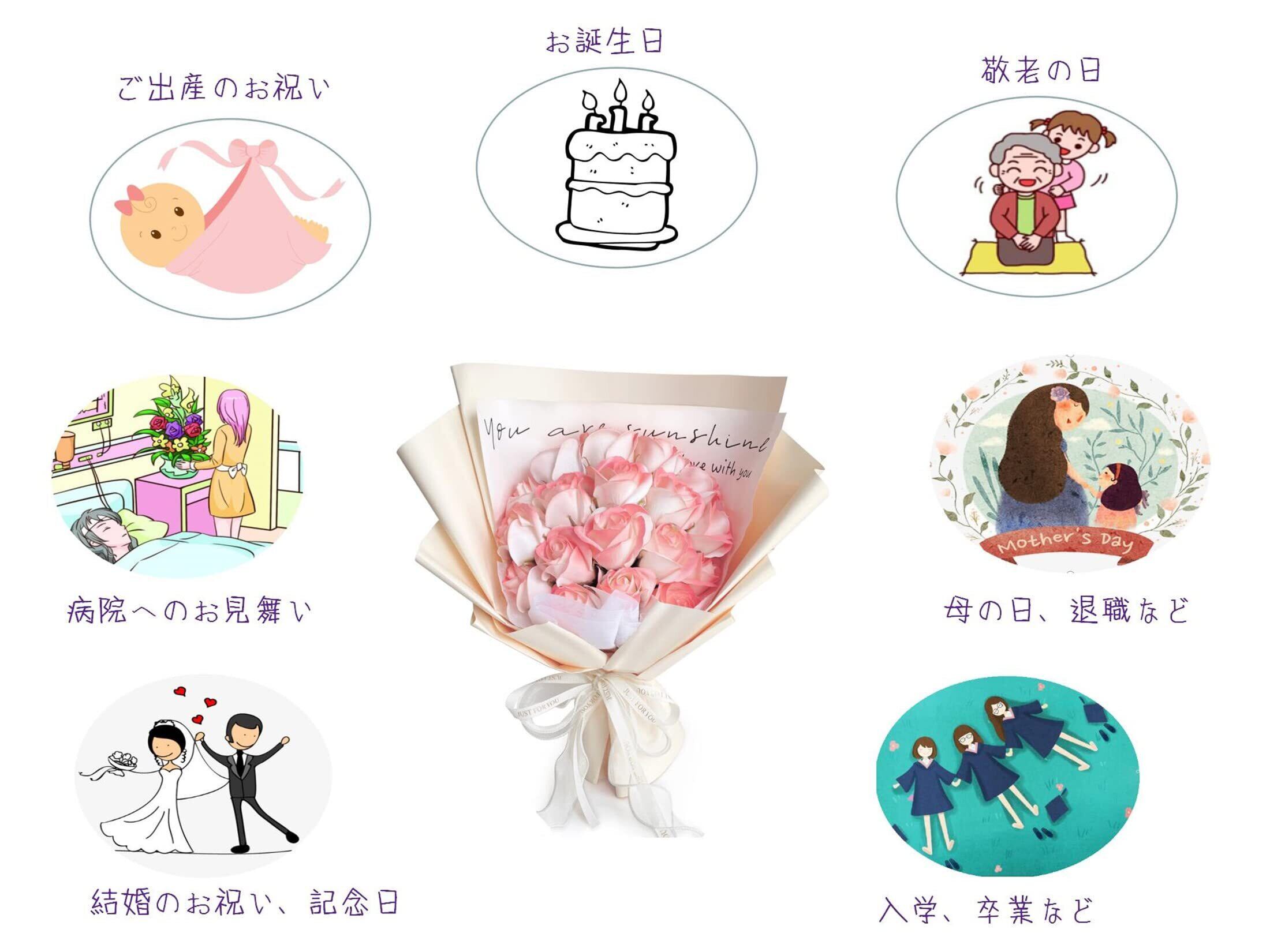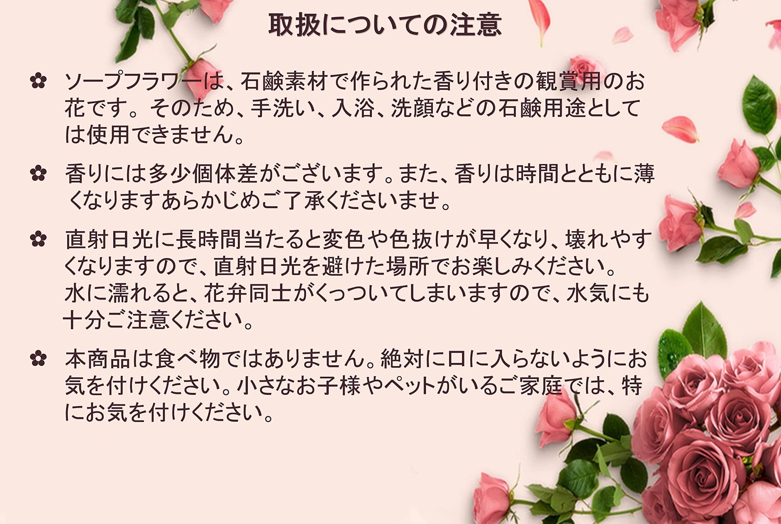 枯れないお花:生花にそっくり、石鹸素材から作られた観賞用のソープフラワーです。お手入れ不要で枯れることがありません。