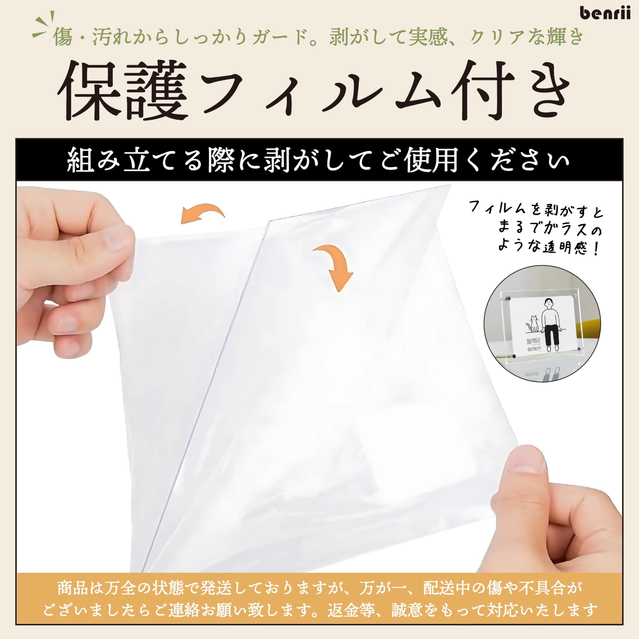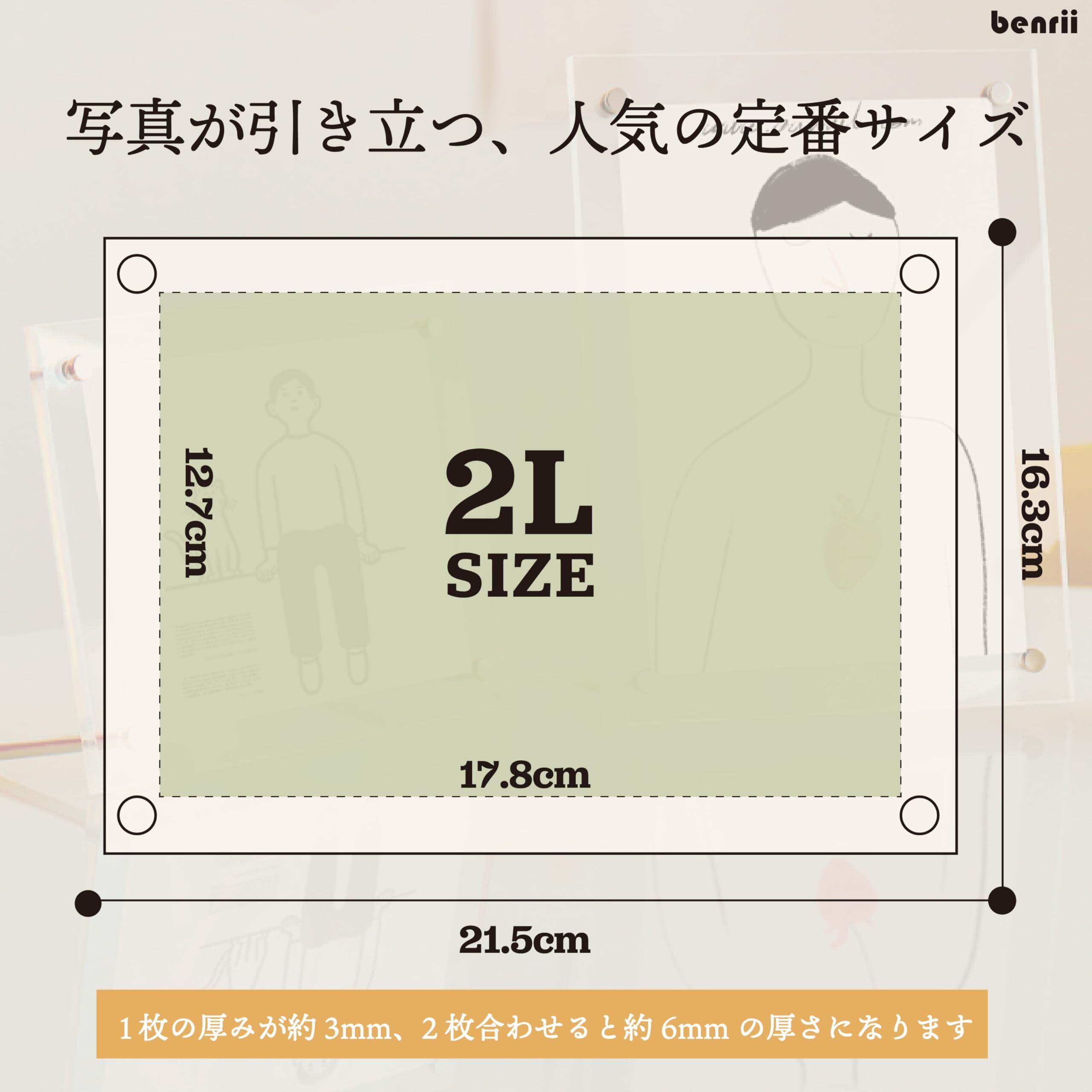 benrii 2L版 アクリルフォトフレーム 写真立て 額縁 透明 スタンドタイプ 横置き縦置き兼用 写真フレーム 両面透明 保護フィルム付き