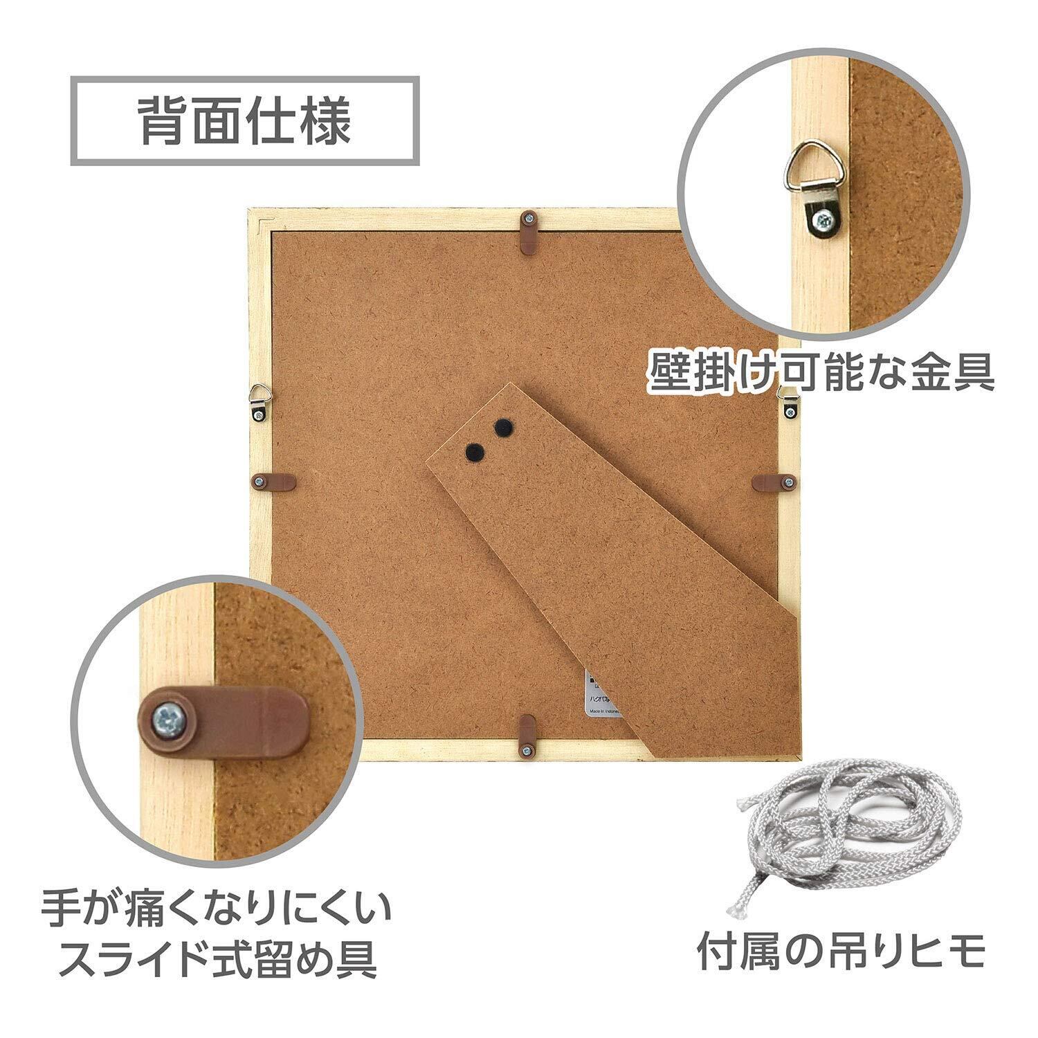 木製の素材感をシンプルなフレーム枠で引き立たせる、正方形の額縁