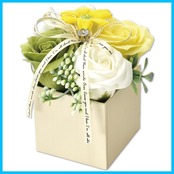 人気のソープフラワーを上品なボックスにアレンジ。まるで生花のような瑞々しさと、優しい香りが特徴です。