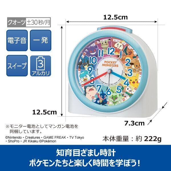 セイコークロック 目覚まし時計 置き時計 クオーツ時計 キャラクター ポケットモンスター 白 125×125×73mm CQ426W