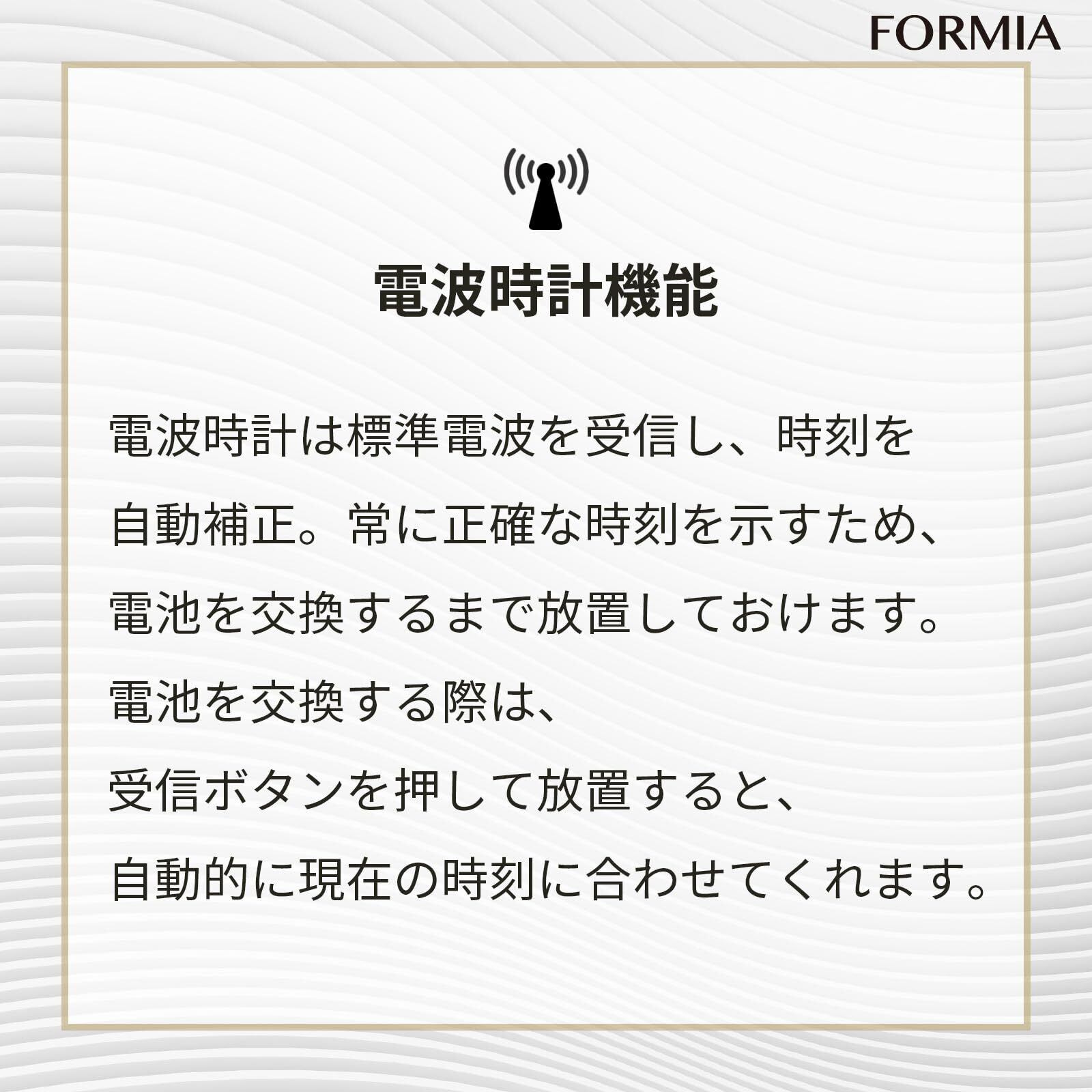 機能:電波受信機能(自動受信、手動受信)、ライト常時点灯機能 (午後10:00~午前6:00)、ライト明るさ調整(強/弱/OFF)、夜間秒針停止機能 (午後10:00~午前6:00)、ステップ秒針
