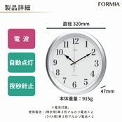 Formia(フォルミア) 電波 壁掛け時計 ライト 見やすい 夜間自動点灯 夜間秒針停止 静音 アナログ 保土ヶ谷電子販売 シルバー HDHAZ-1008-SV