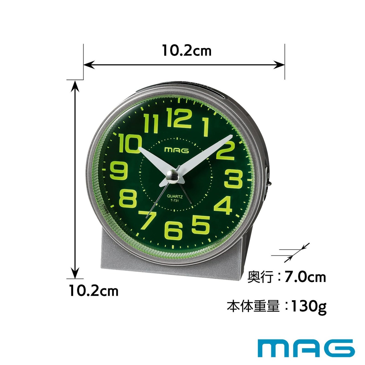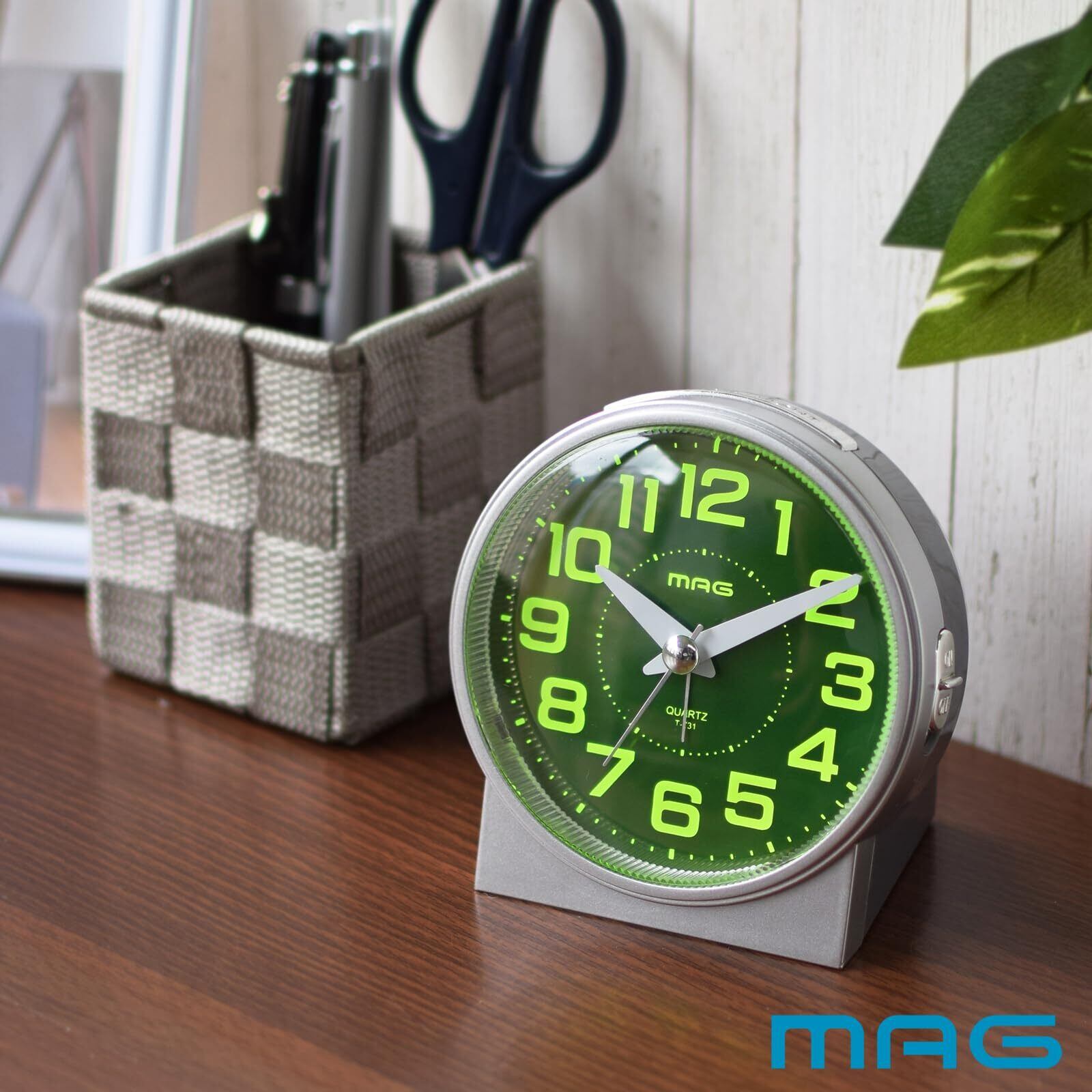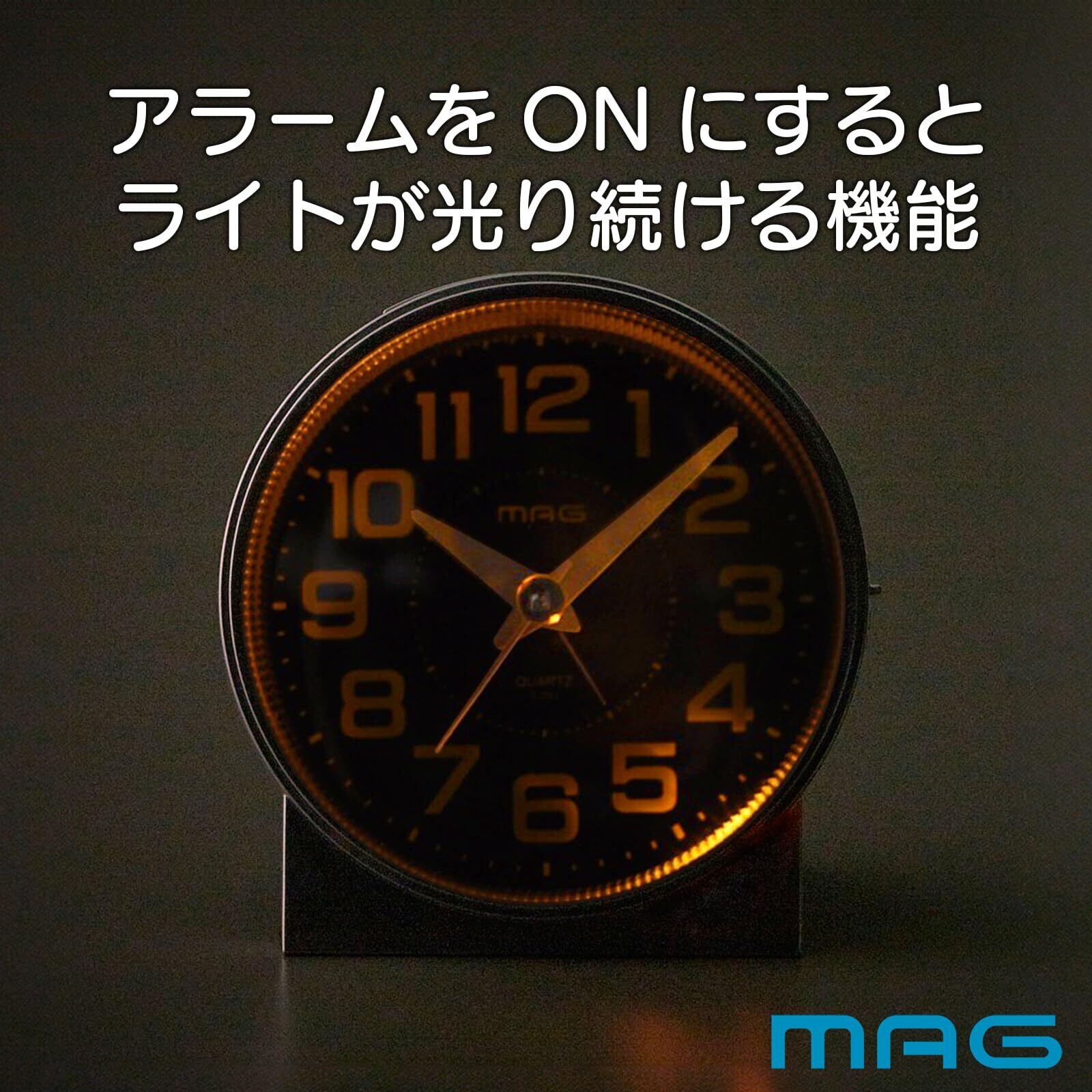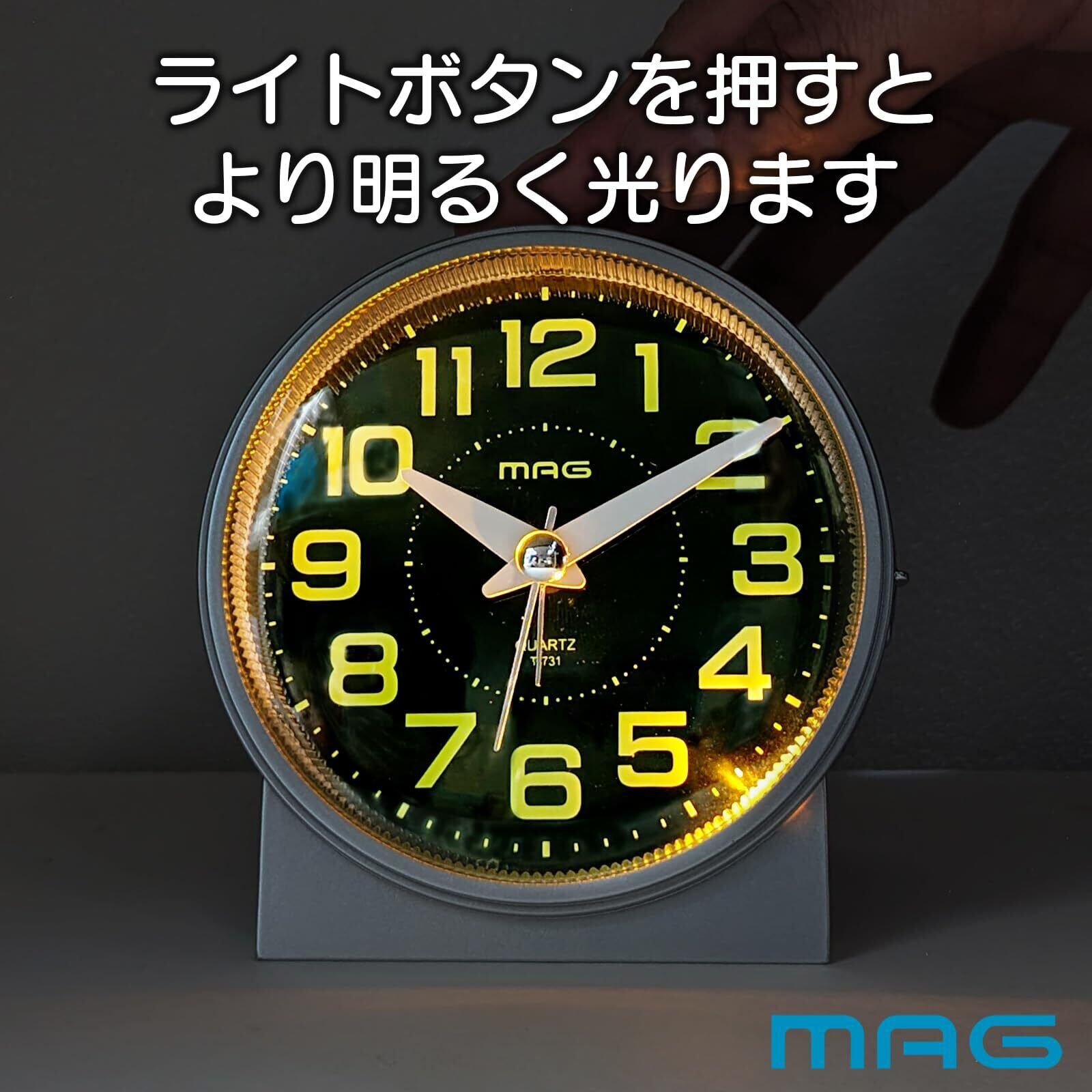 MAG(マグ) 目覚まし時計 置き時計 アナログ 見やすい アラームオンでライトが光り続ける 静音 連続秒針 電子音 アラーム スヌーズ ライト シルバー 光助 T-731 SM-Z ノア精密