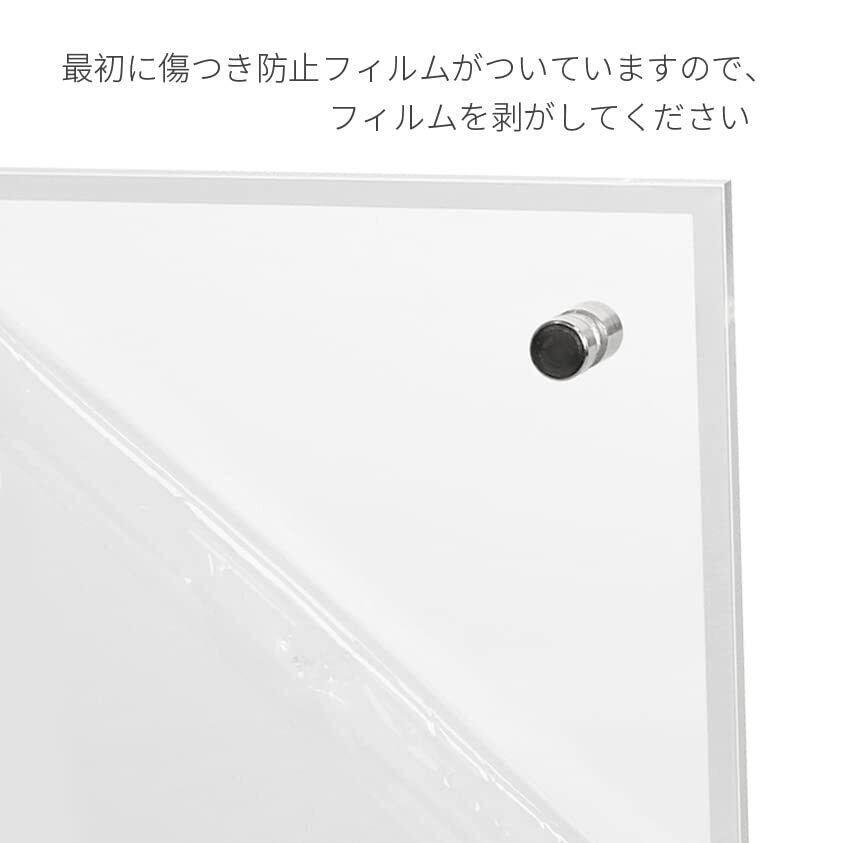 【机置き方】到着後保護膜を剥がしてください。2枚アクリル板にオスやメスのネジを取り付ければセットアップ完了、縦置きか横置き、フレームを支えてる支柱の位置を変えると置き方が変えられます。ワイヤーをフレームに装着すると壁に掛ける事が出来ます。