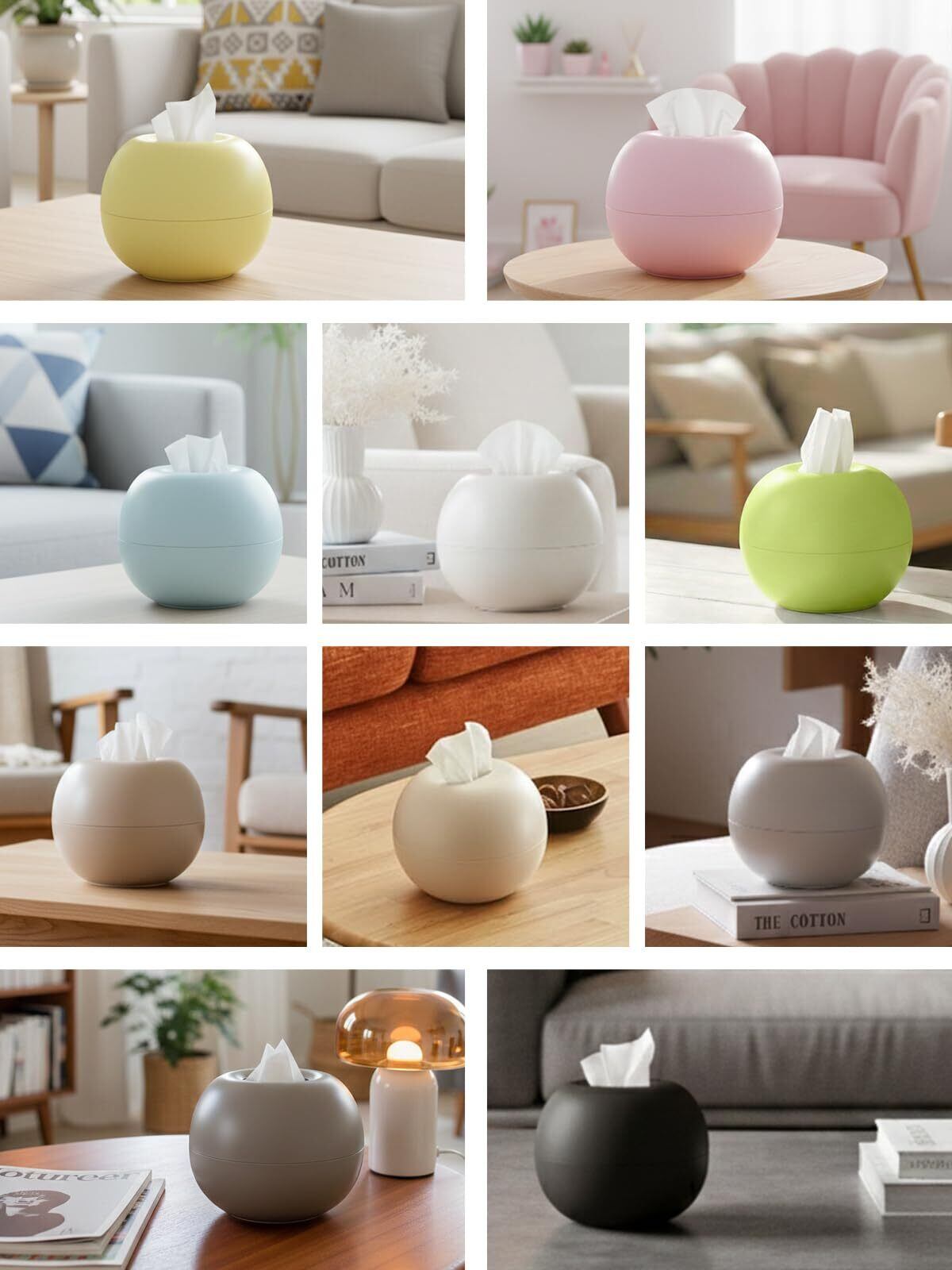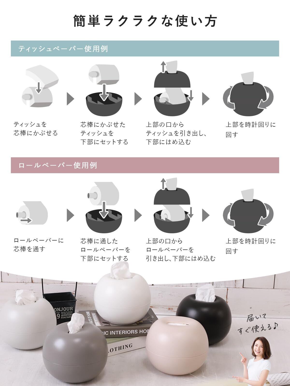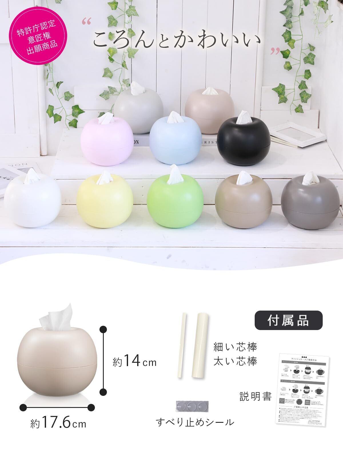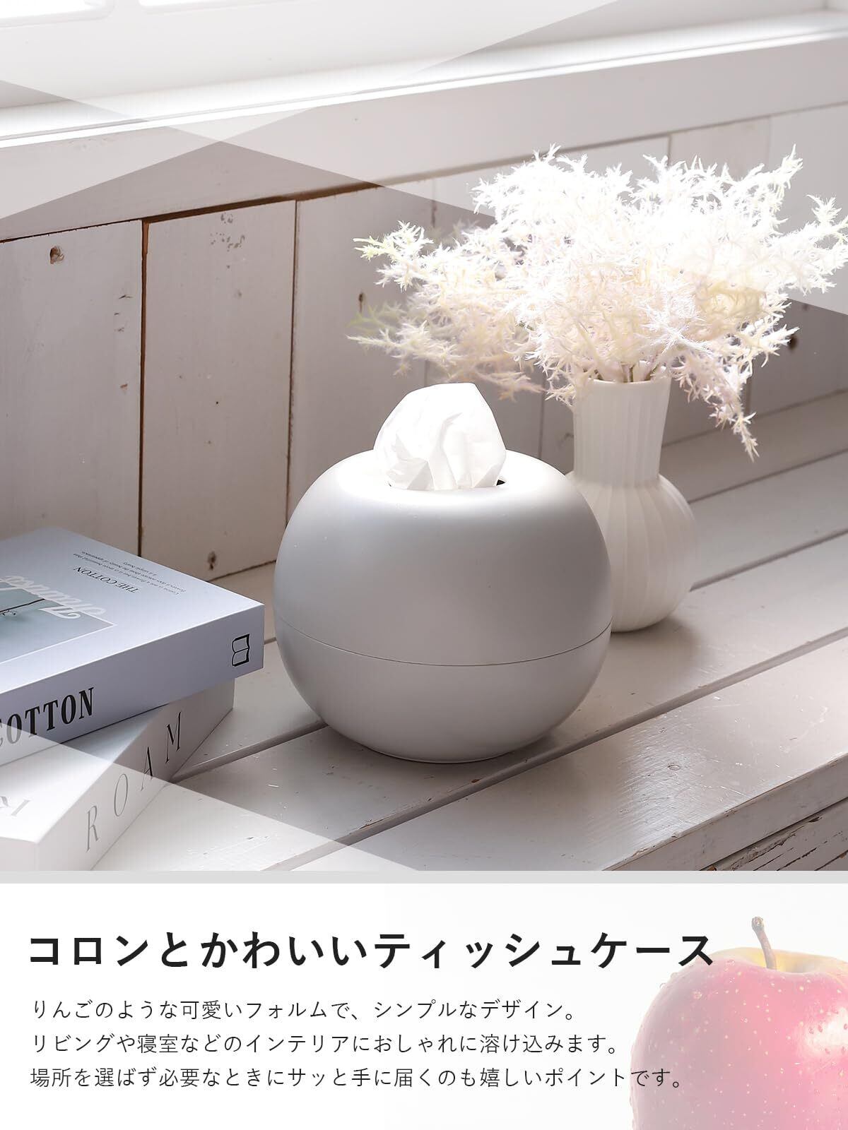 【コロンとしたかわいいデザイン】 リンゴのような形の球体に近い丸いフォルムで、ただのティッシュケースに見えずインテリア性が高く、お部屋をおしゃれに演出します。