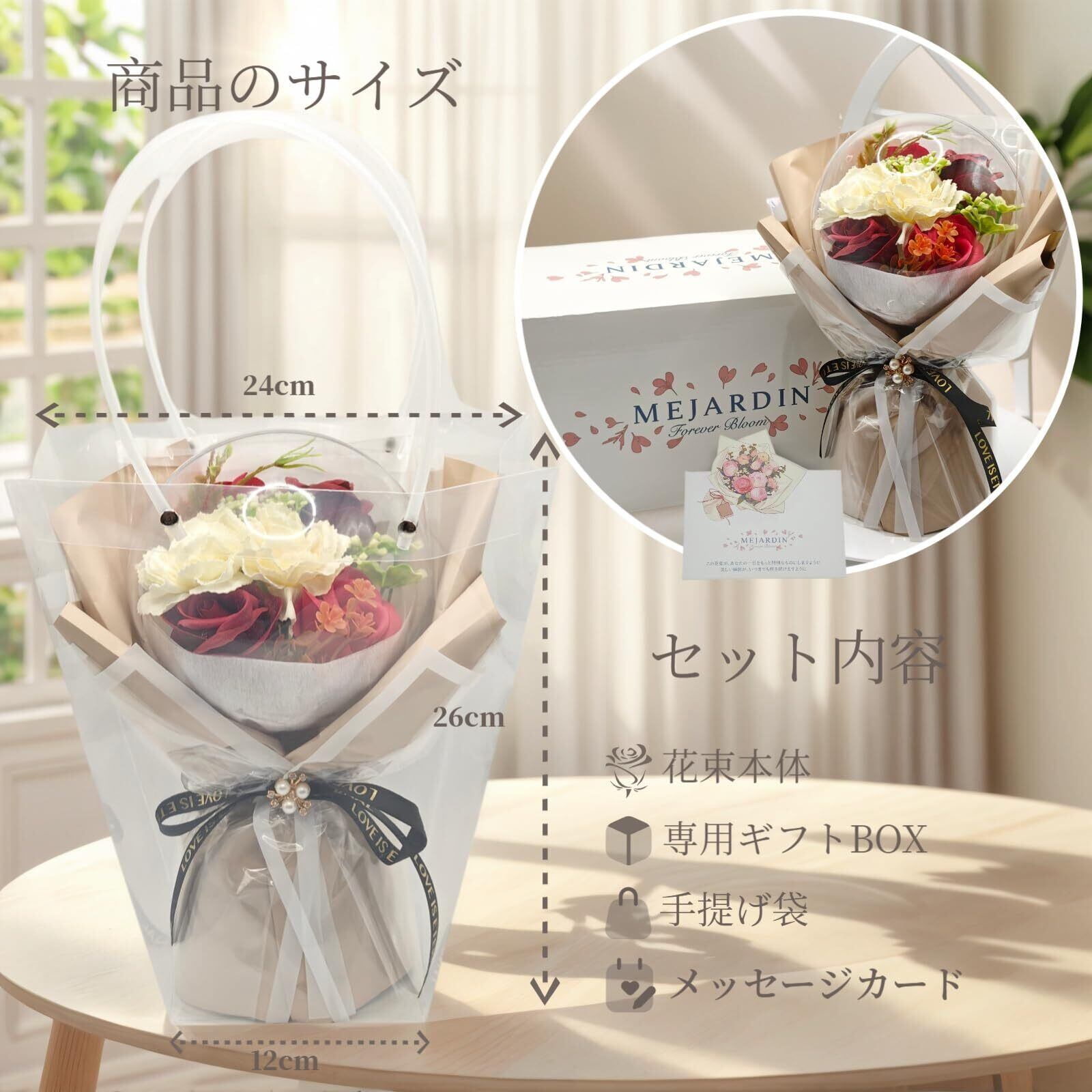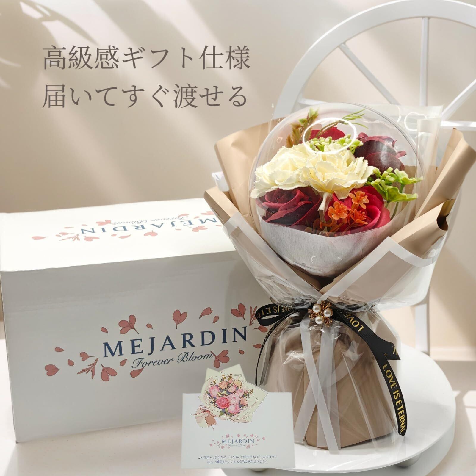 ️【観賞専用・お取り扱いの注意】本商品は観賞用です。石鹸や芳香剤としては使用できません。カードは無地のため、お客様ご自身でご記入ください。高温多湿・直射日光を避けてお楽しみください。