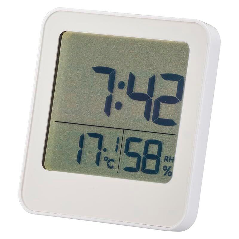 オーム電機 時計 デジタル 温度計 湿度計 温湿度計 お風呂場用 マグネット 吸着式 スタンド式 お風呂クロック&温湿度計 ホワイト HB-T20-W 08-1450 OHM