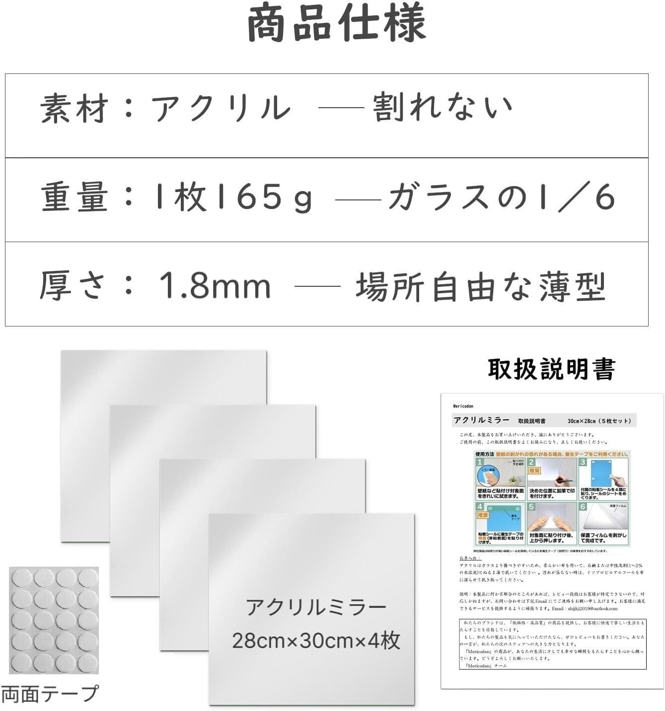 【安全で安心の割れない鏡】超軽量のアクリル材質を採用し、落下しても割れにくく設計。お子様やペットがいるご家庭でも安心して使用でき、貼り付け式でぶつからないように。地震などの災害時にも、鏡の破片が飛び散る心配はありません。