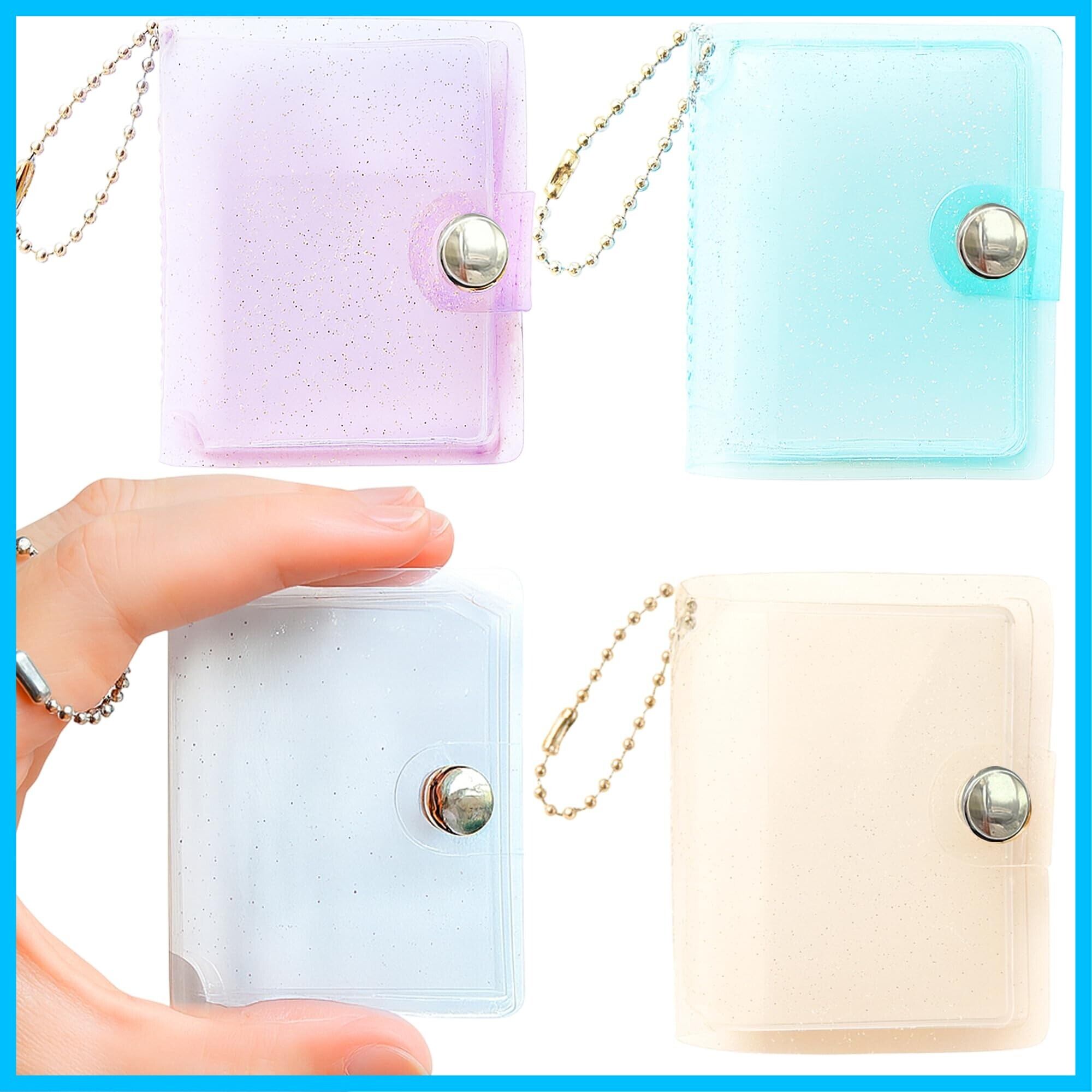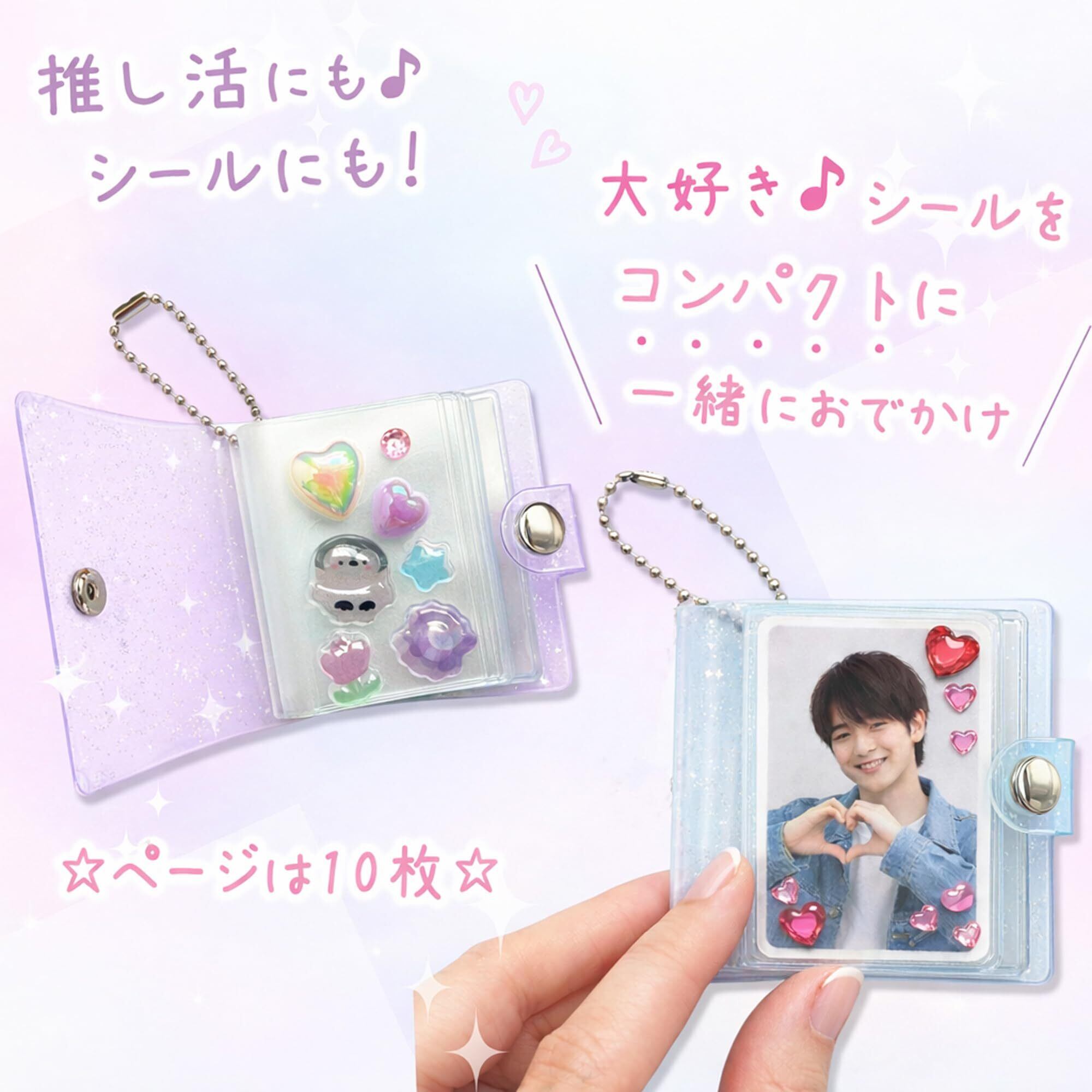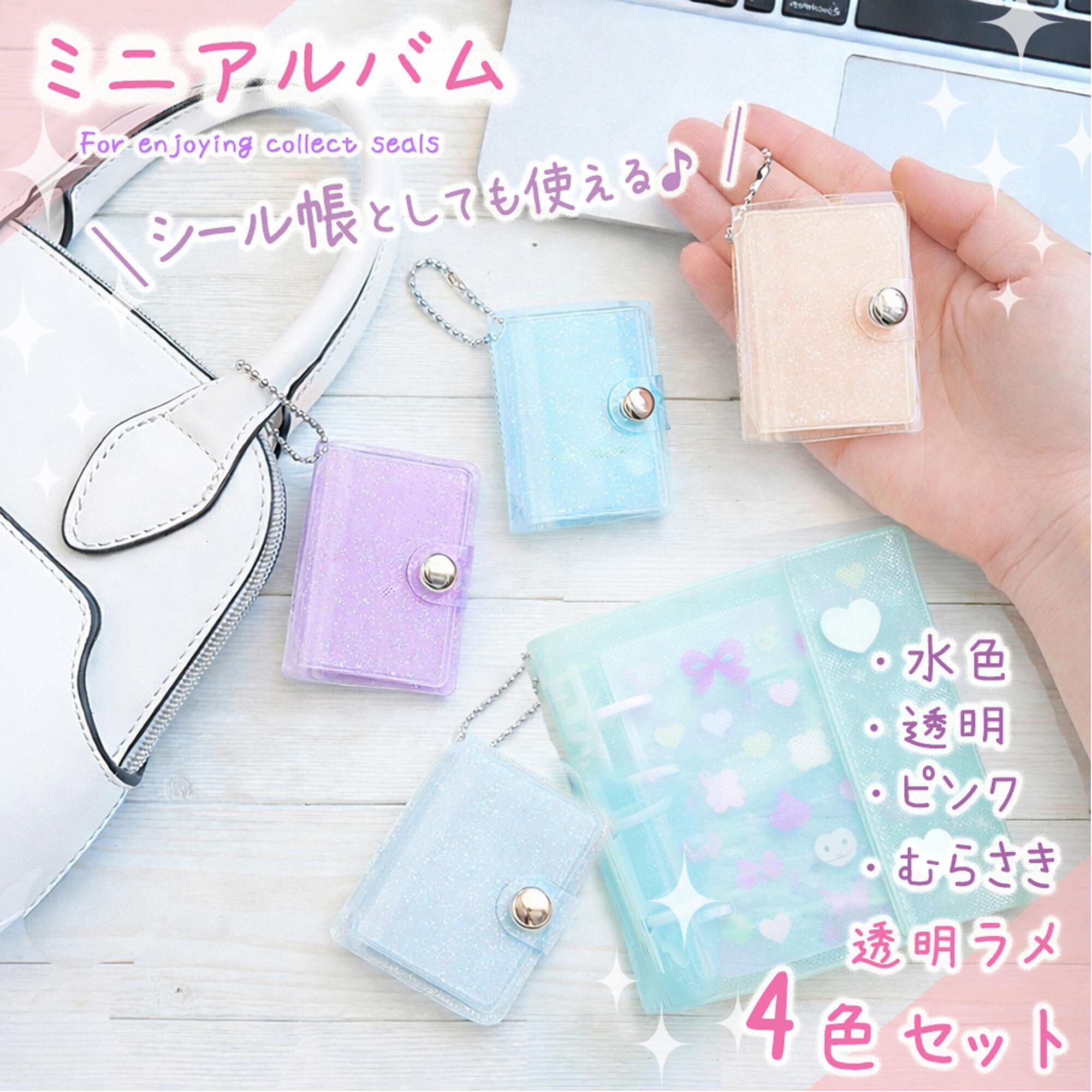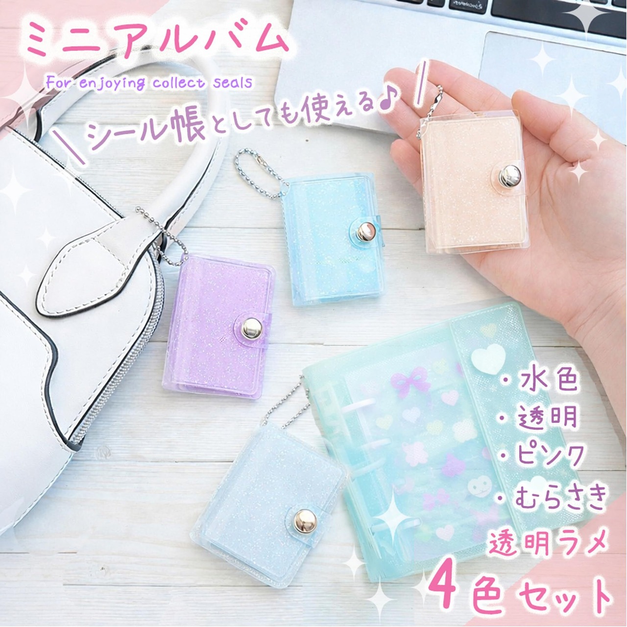 AbonAbon ラメ ミニ フォトアルバム シール帳 ボールチェーン キーホルダー 女の子 小学生 ピンク 紫 水色 クリア (ラメ4色セット)