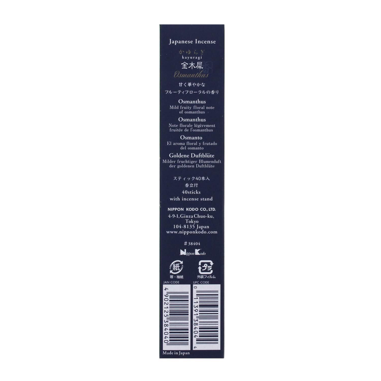 日本香堂(Nippon Kodo) かゆらぎ 金木犀 スティック 40本入 香立付 単品 ホワイト 1個 (x 1)