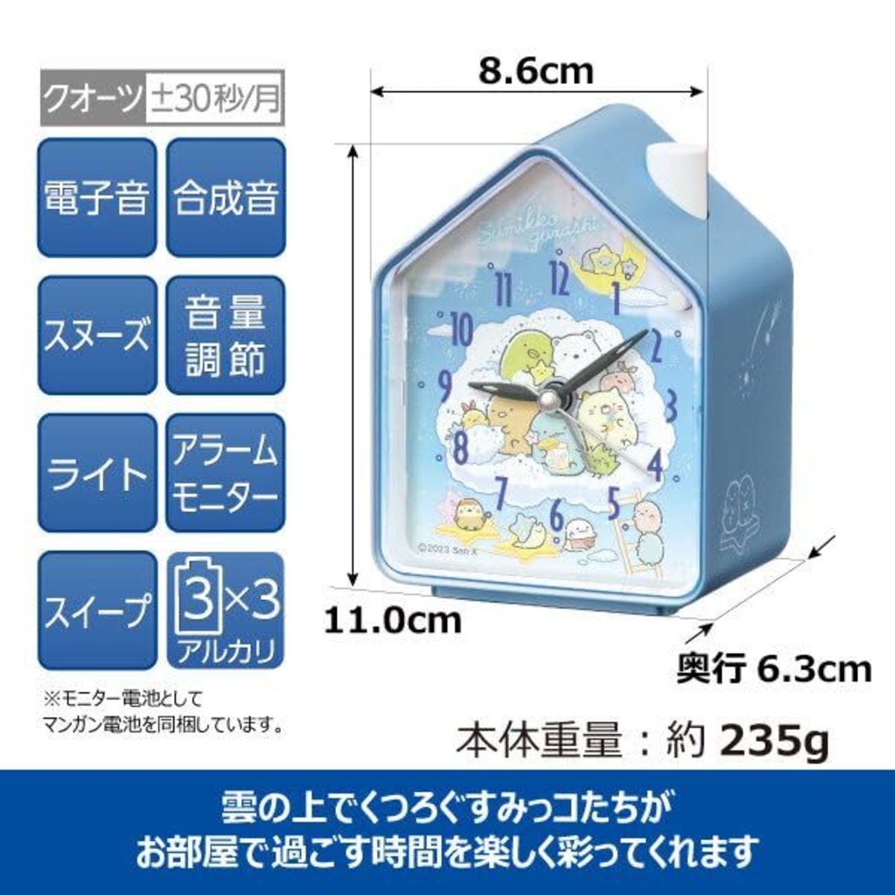 セイコークロック(Seiko Clock) 目覚まし時計 すみっコぐらし 薄青パール 110×86×63mm CQ166L