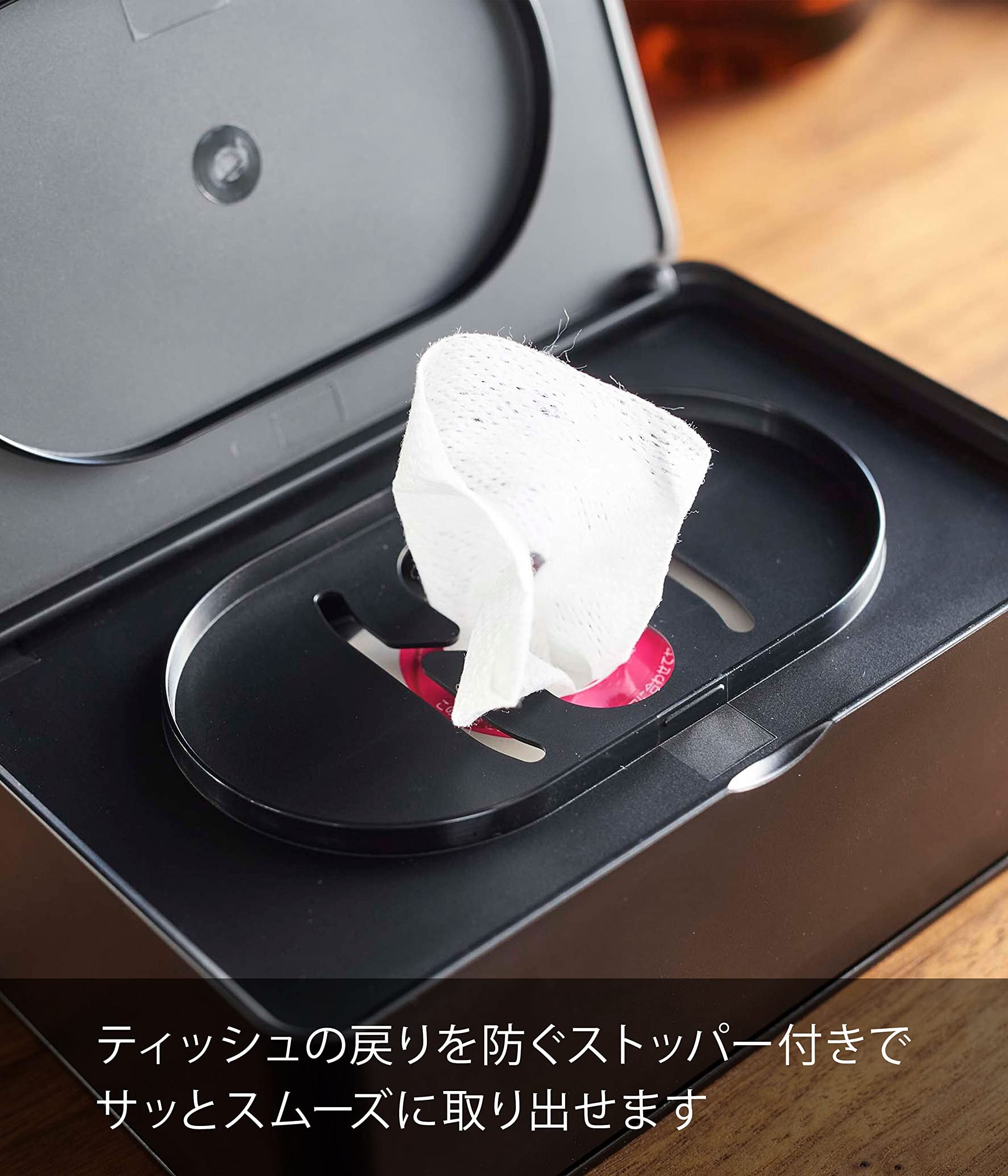 山崎実業(Yamazaki) ウェットティッシュケース 長方形 ブラック 約W16×D10×H6㎝ スマート smart ペーパーストッパー付き 5579