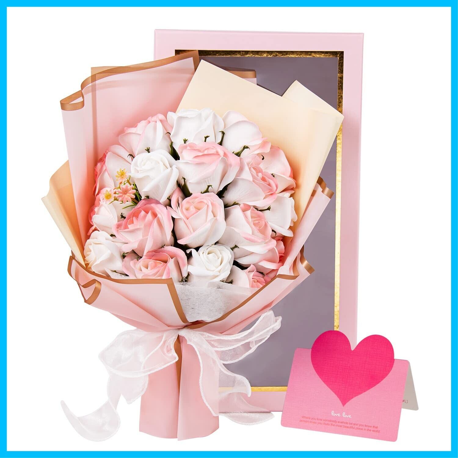 ソープフラワー 花束 母の日 ギフト 人気 フラワーブーケ 枯れない花 石鹸花 花ギフト メッセージカード付 クリアボックス 手提げ袋 誕生日プレゼント 女性 敬老の日 送別会 (Pink rose)