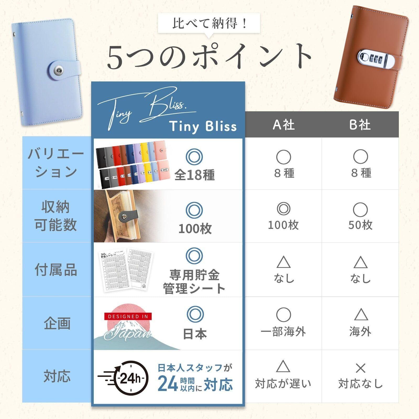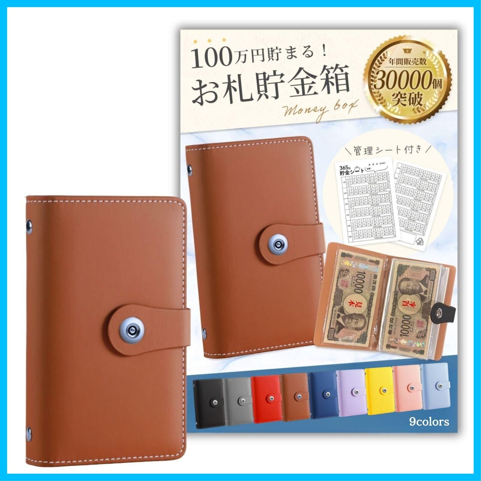 [Tiny Bliss] お札 貯金箱 貯金手帳 貯金バインダー 選べる16タイプ (ブラウン, ロックなし)