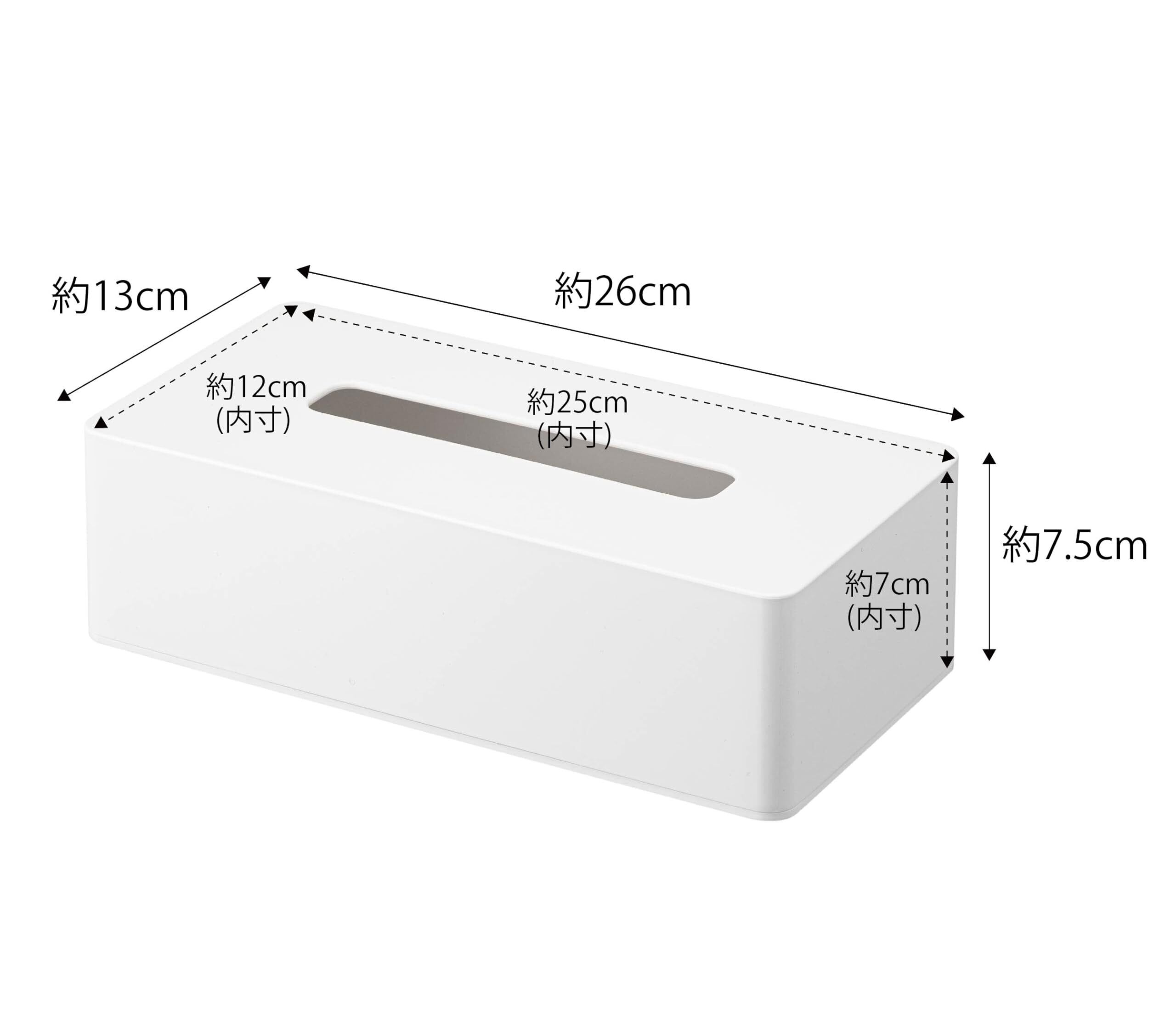 ■商品サイズ:約26×13×7.5cm<br> ■材質:ABS樹脂<br> ■付属品:木ネジ×4<br> ■耐荷重:500g<br> ■対応サイズ:高さ約7cmまでの一般的なティッシュボックス ※枚数の目安/200組(400枚)以内<br> ■カラー:ホワイト