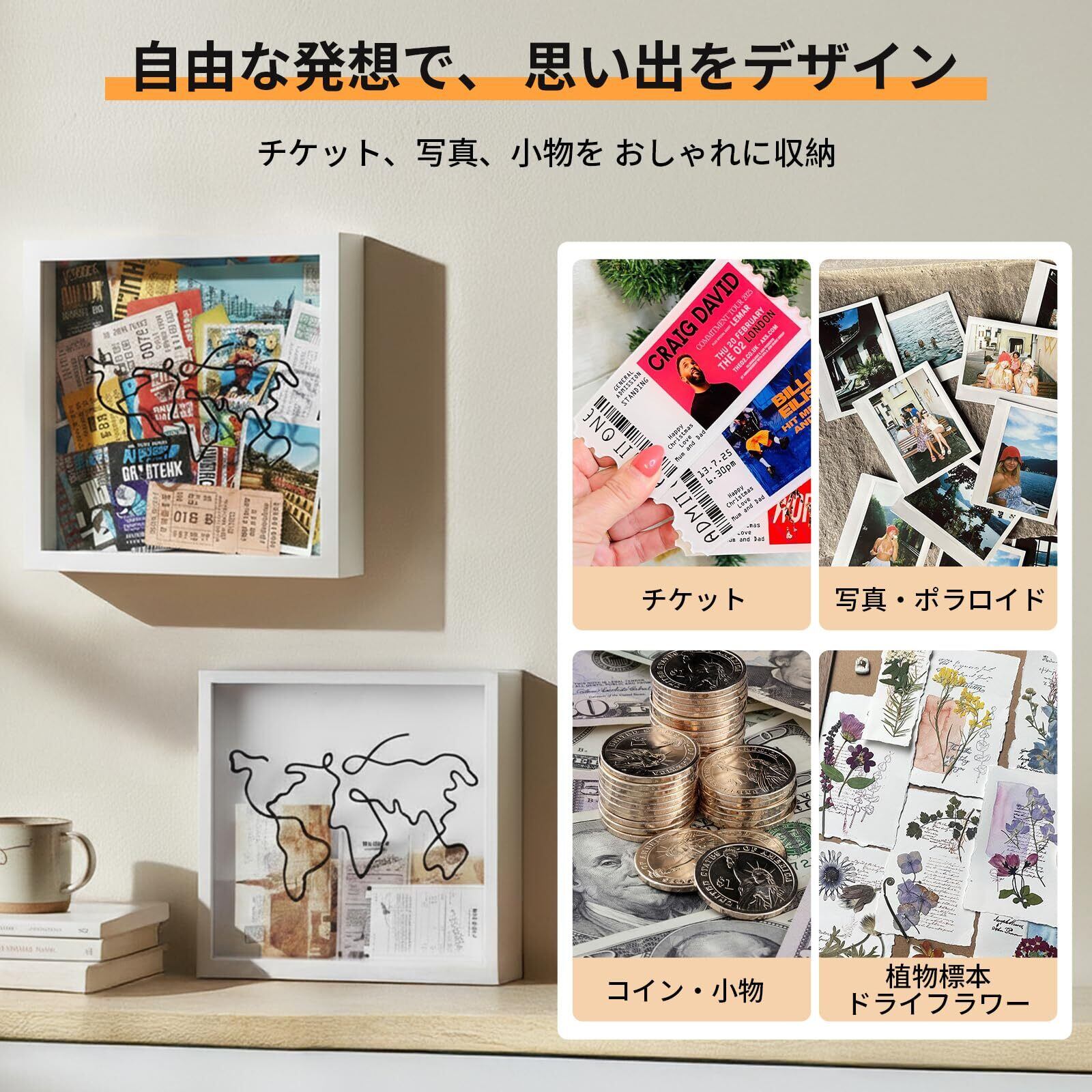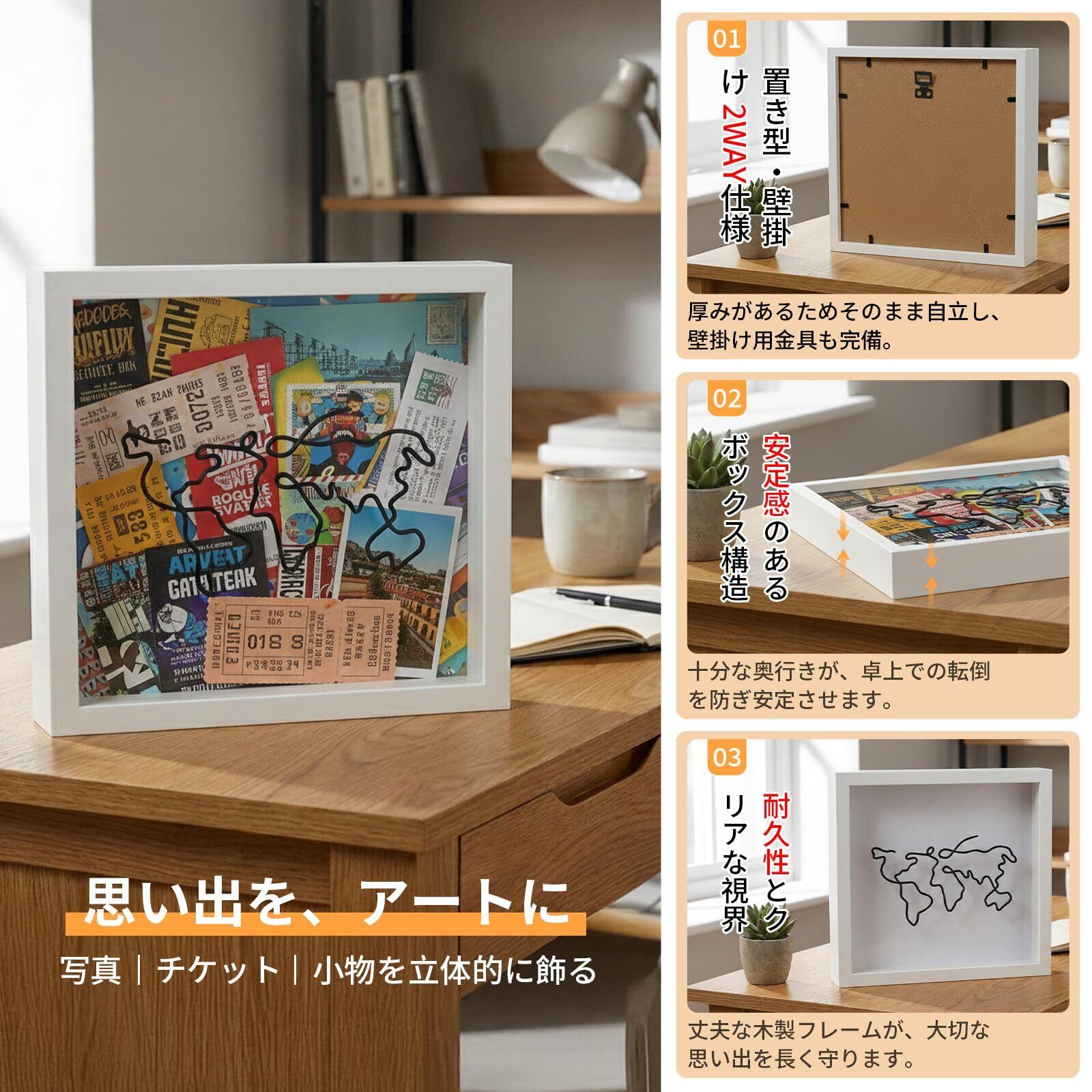 チケットボックス シャドウボックス 思い出 フレーム チケット 収納 立体額 木製 2WAY (壁掛け/卓上) 写真 ドライフラワー 記念品 飾り (ホワイト, S 15*15cm)