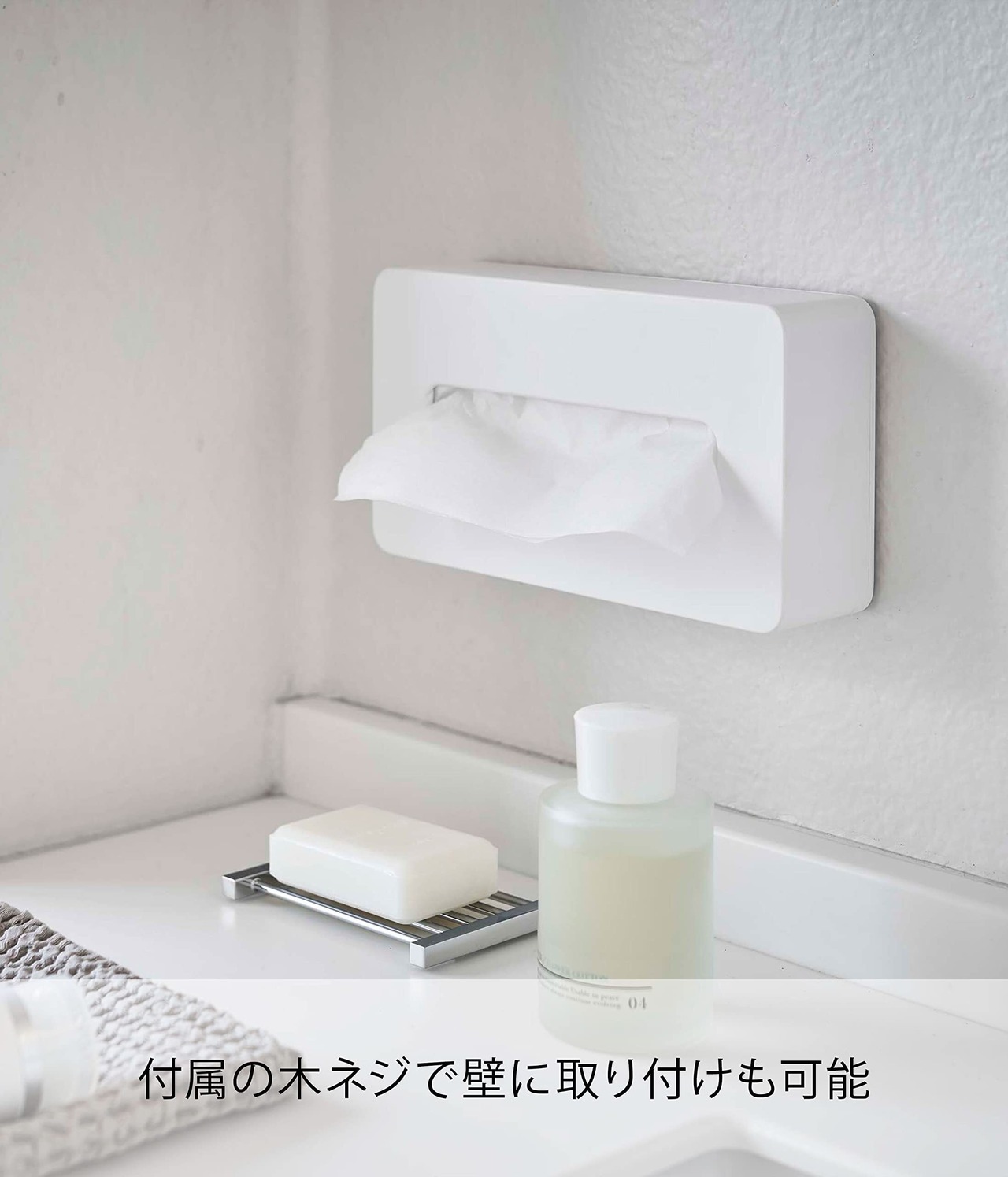 山崎実業(Yamazaki) コンパクト ティッシュケース ホワイト 約W21.5×D11.5×H5.5cm タワー tower ソフトパックティッシュ専用 壁面収納可 5092