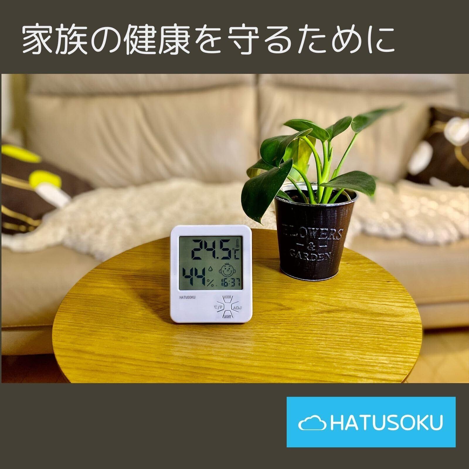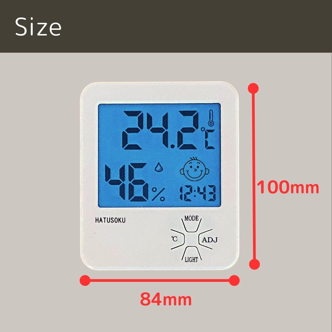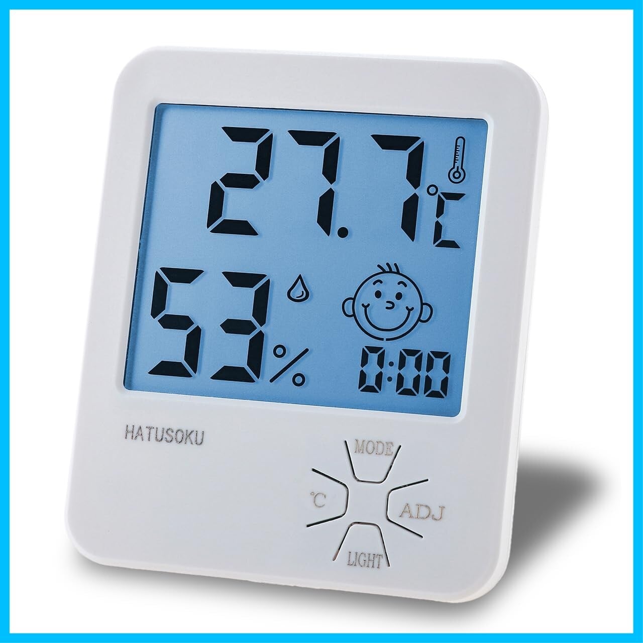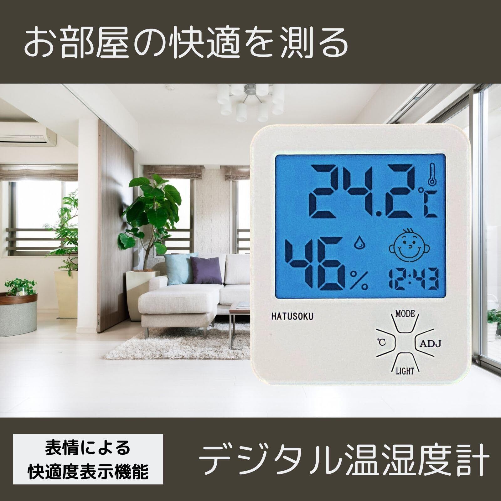 HATUSOKU デジタル温湿度計 温度計 湿度計 快適度顔表示 (バックライト付き) ホワイト