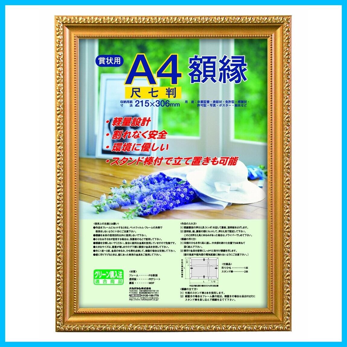 ナカバヤシ 木製軽量額縁 金ケシ 賞状 尺七判 フ-KWP-34