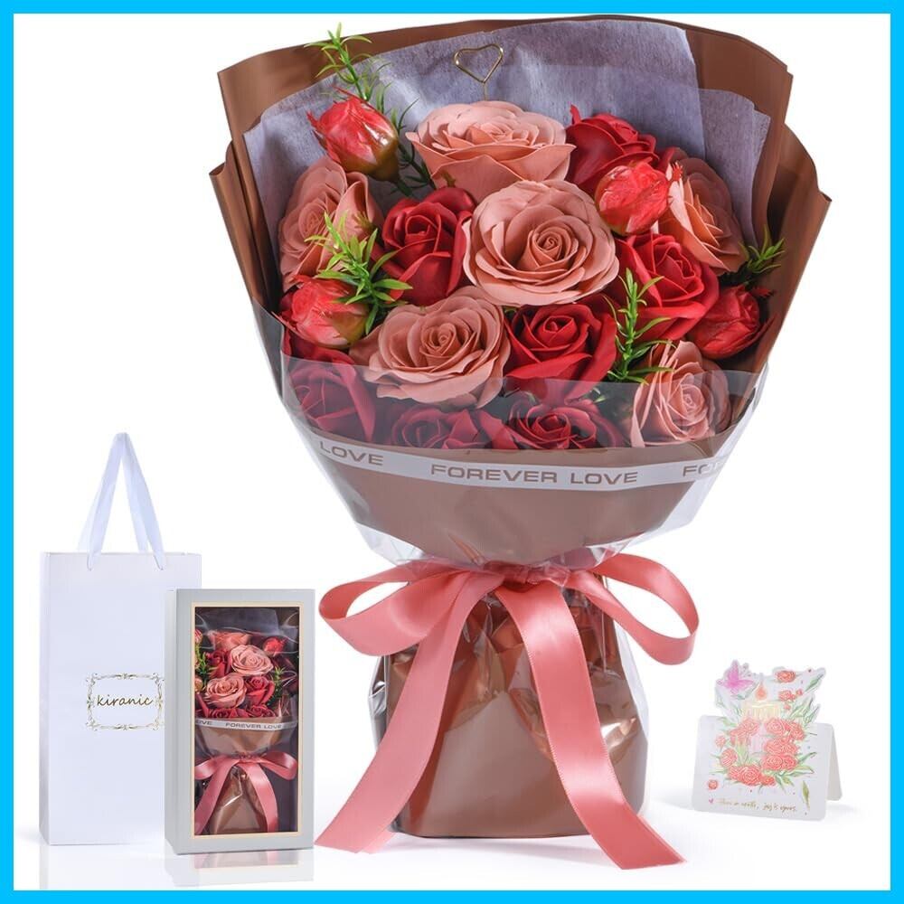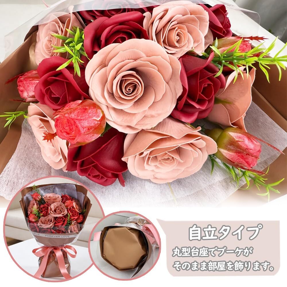 ソープフラワー 花束 カプチーノ赤バラブーケ プレゼント 母の日 造花 バレンタインデー 誕生日ギフト 枯れない花 石鹸花 記念日 結婚祝い お見舞い贈り物 手上げ袋とメッセージカード付き