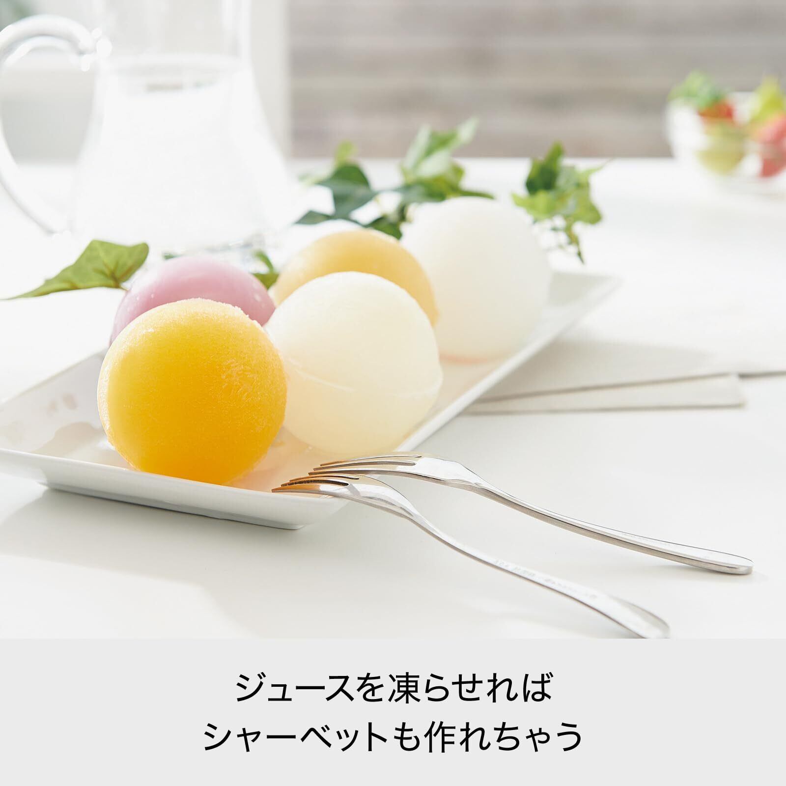 直径およそ60mmの丸氷が作れる製氷器。 ロックグラスにピッタリのサイズ。ゆっくり溶けるのでウイスキーなどの飲み物を薄めず楽しめます。 大きな氷なので中にミントなどのハーブを入れて凍らせてもキレイ。 そのほかジュースなどを凍らせてシャーベットを楽しんでも。 やわらか素材のフタで、ひねったり押し出したりしてカンタンに氷が取り出せます。 製氷器複数使用時はスタッキングできる設計で場所を取らないのも嬉しいポイント。
