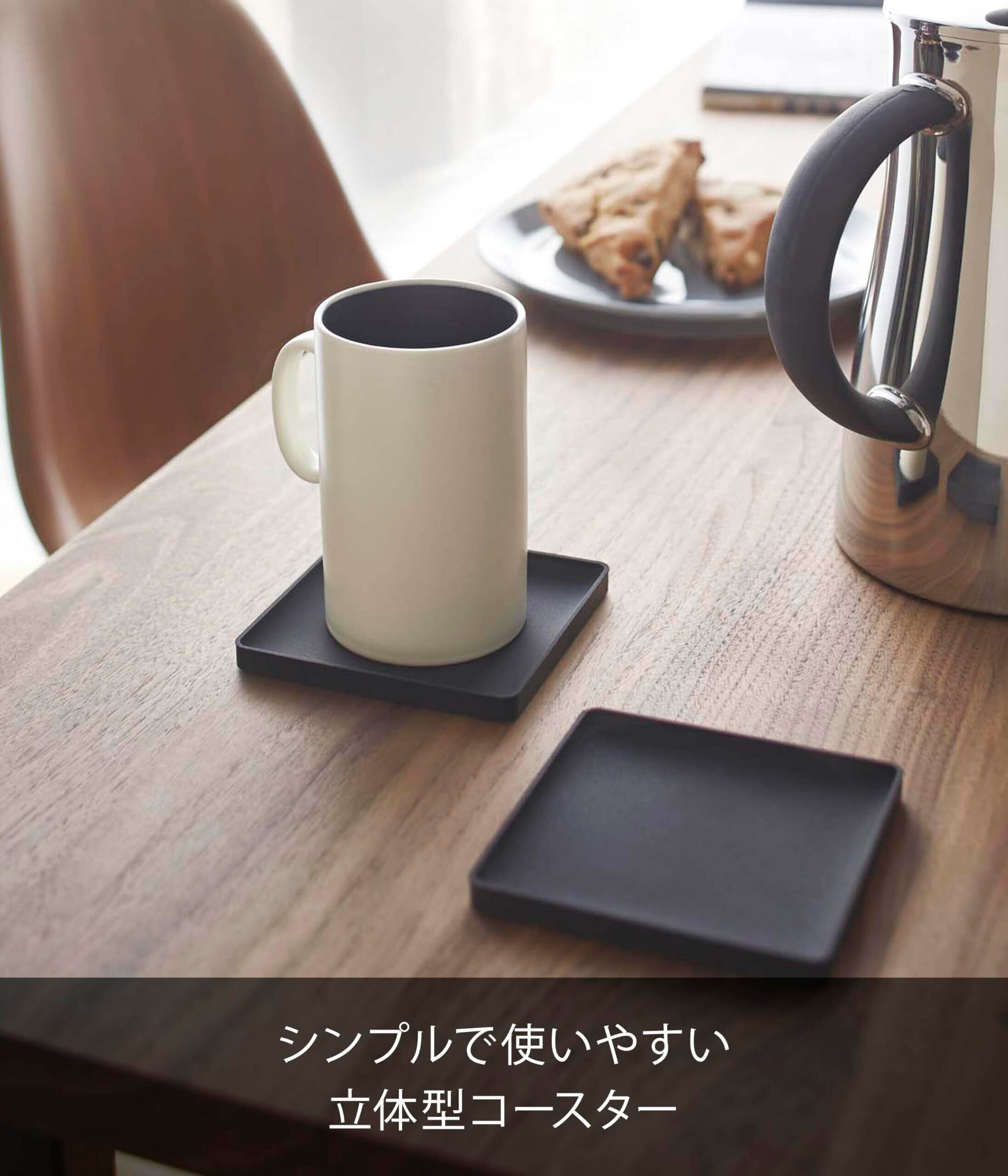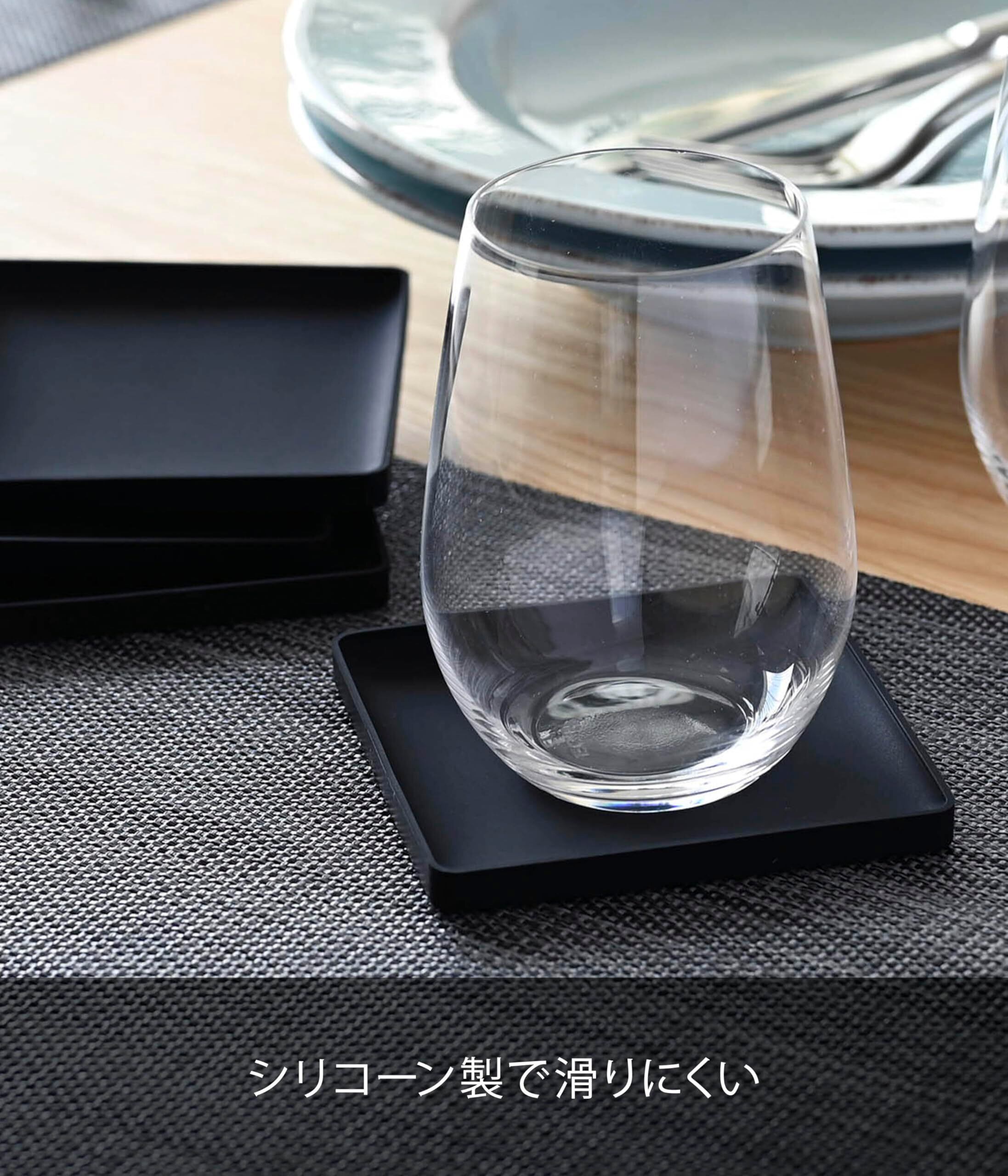 山崎実業(Yamazaki) 立体 コースター 角型 ブラック 約W9.5×D9.5×H0.9cm タワー シリコン 2537