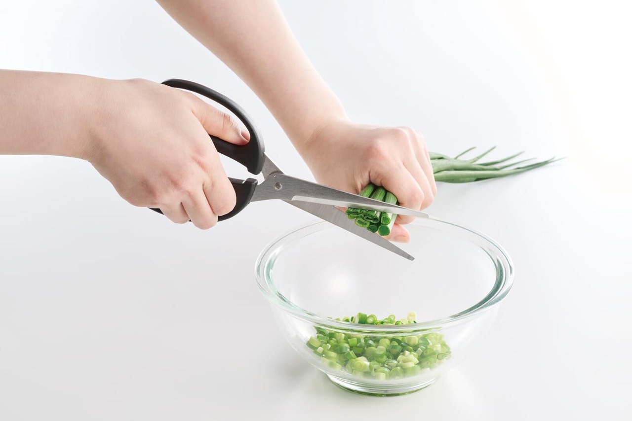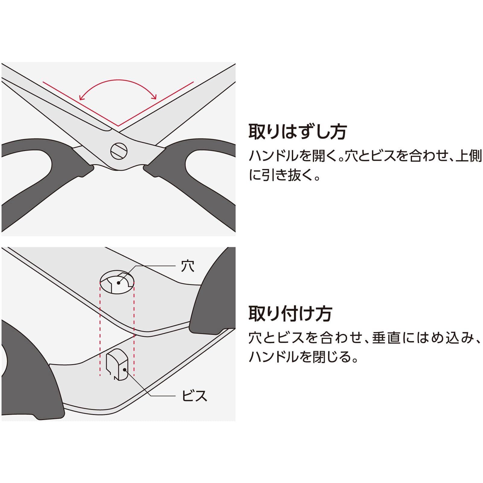 ●ハサミを置いた時に先端が浮く形状●刃の表面が滑らかで汚れが落ちやすくさびにくい●分解式だから洗いやすい●食洗機対応●日本製刃材の鋭い切れ味●手に優しいソフトハンドル●食材を逃がしにくいギザ刃