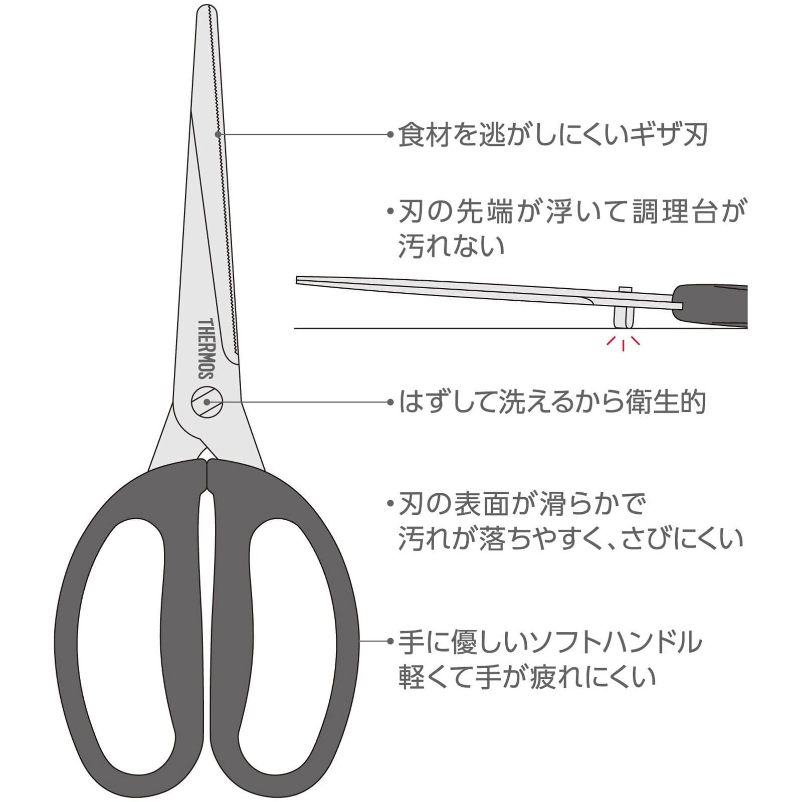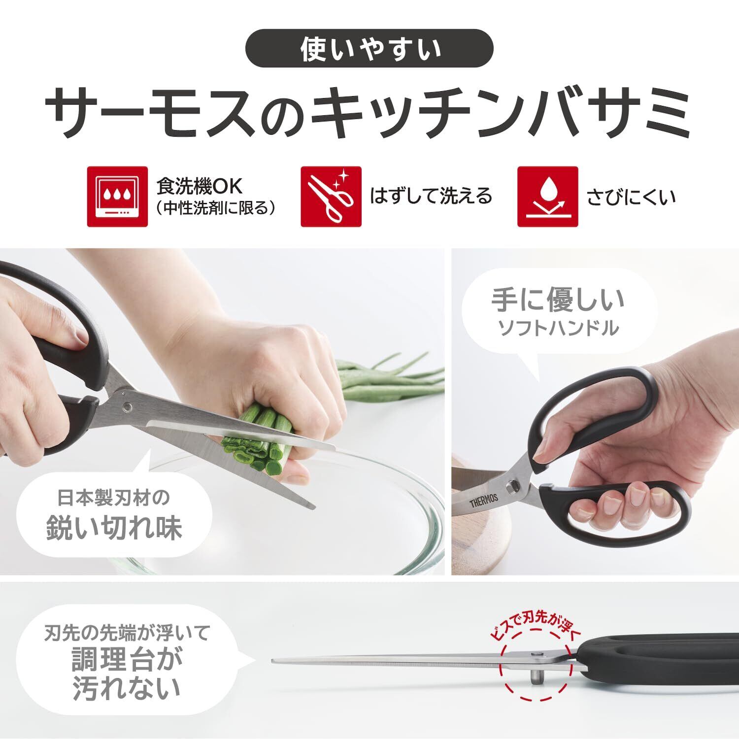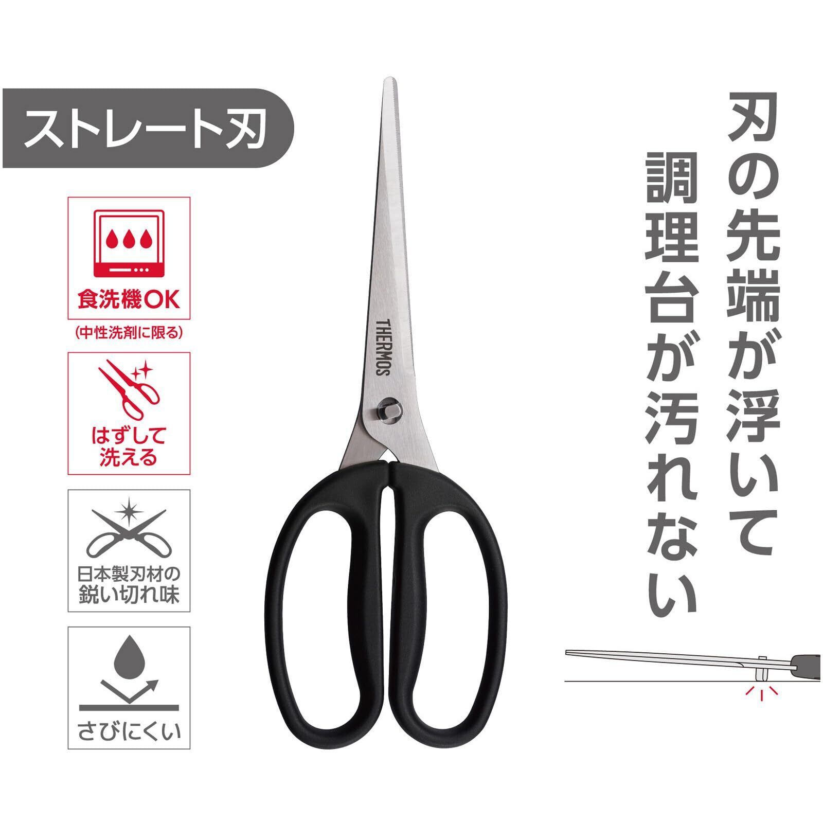 サーモス キッチンバサミ ストレート刃 ブラック 分解式 食洗機対応 料理ばさみ 日本製刃材の鋭い切れ味 刃先が浮いて調理台が汚れない 汚れが落ちやすくさびにくい KK-HS001 BK